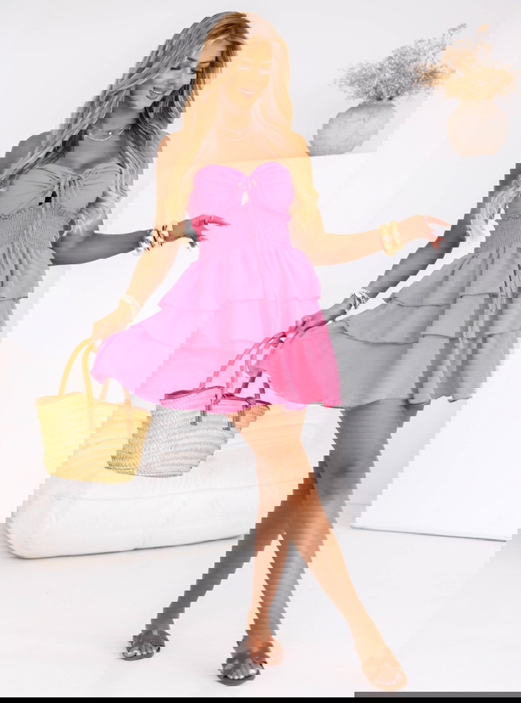 Różowa sukienka mini z falbanami Madeleina to idealna sukienka na lato – sprawdzi się podczas wakacyjnych wyjazdów, spacerów czy spotkań na świeżym powietrzu. Będzie również świetnym wyborem na randkę, festiwal lub imprezę w ogrodzie.