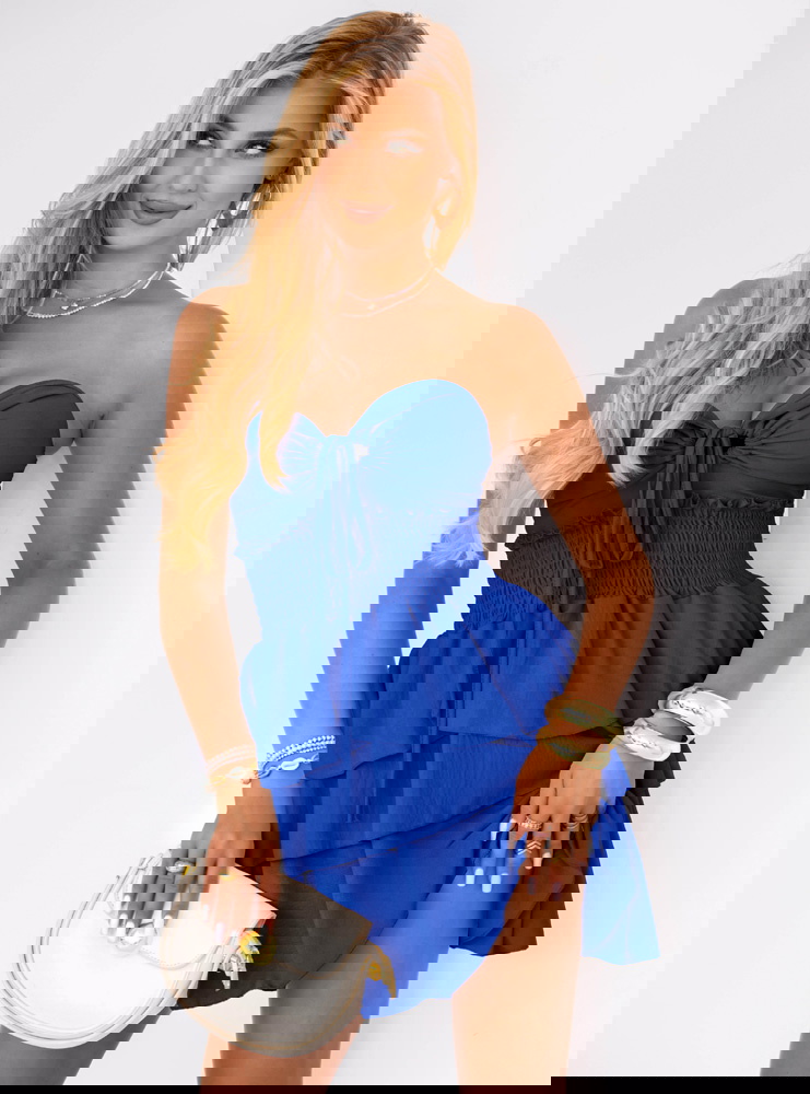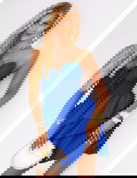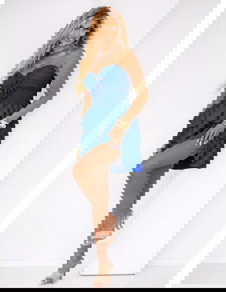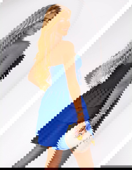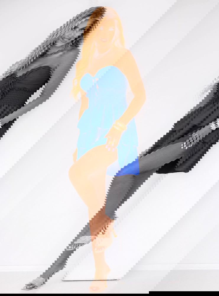 Chabrowa sukienka mini z falbanami Madeleina to kwintesencja kobiecości w letnim wydaniu. Już na pierwszy rzut oka przyciąga wzrok intensywnym, chabrowym kolorem, który dodaje energii i wyróżnia z tłumu. To idealny wybór dla kobiet, które lubią podkreślać swoją urodę i czuć się wyjątkowo. Krój sukienki jest przemyślany tak, by delikatnie eksponować ramiona, a jednocześnie zapewniać pełną swobodę ruchów. Góra z marszczeniem pięknie podkreśla talię i biust, tworząc zmysłowy, ale nienachalny efekt. Falbanki na dole dodają lekkości i dziewczęcego uroku, co sprawia, że każda chwila w tej sukience nabiera letniego charakteru. To propozycja, która łączy luz z elegancją, dzięki czemu sprawdzi się zarówno na co dzień, jak i na specjalne okazje. Sukienka została zaprojektowana z myślą o kobietach, które lubią czuć się modnie, a jednocześnie wygodnie. Efektowny wiązany detal z przodu dodaje uroku i przyciąga spojrzenia. To model, w którym trudno się nie zakochać!