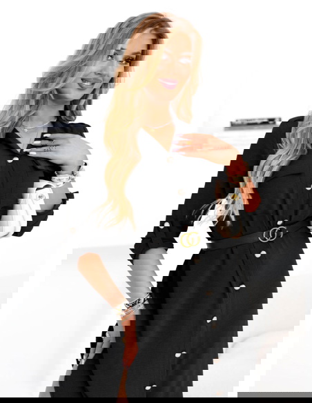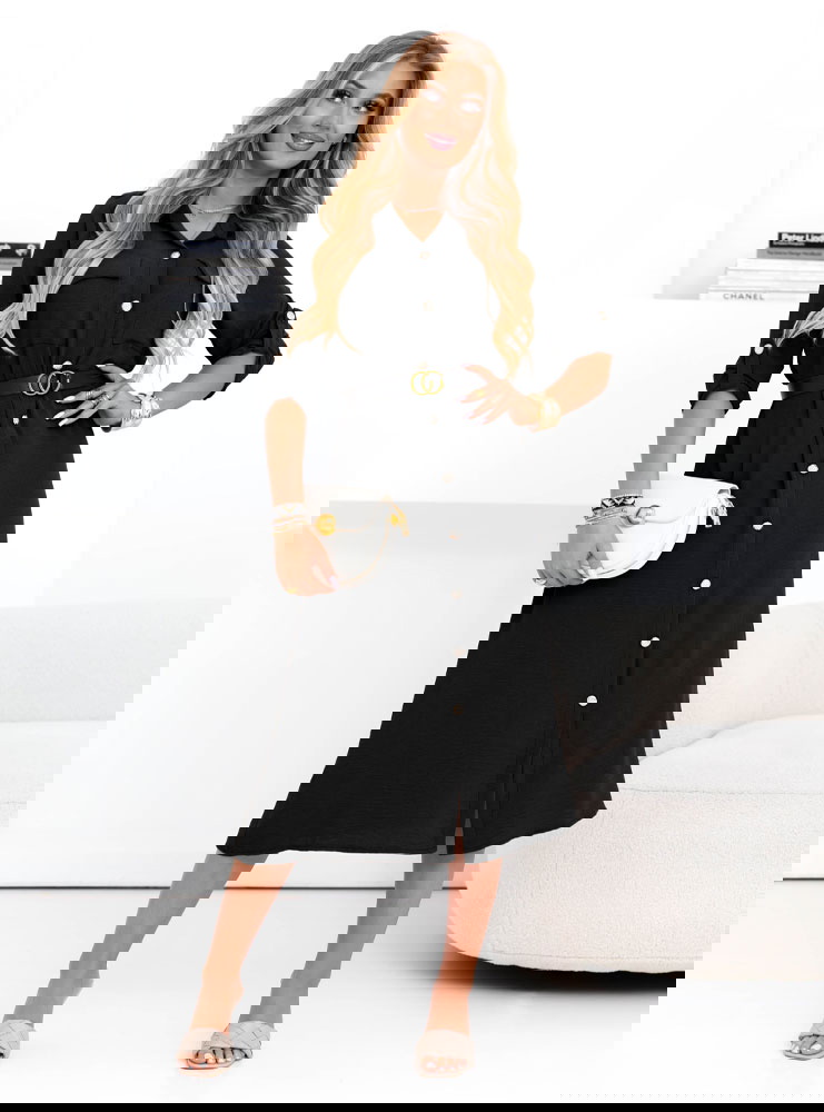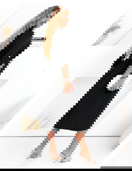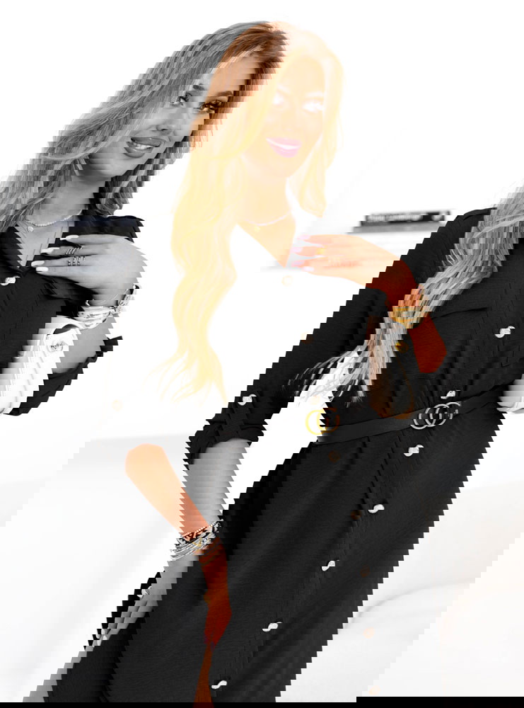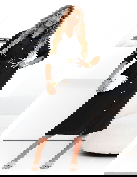 Czarna sukienka midi z paskiem Cobie to klasyka, która nigdy nie wychodzi z mody – prosta, elegancka i zawsze na czasie. Ten model to idealne rozwiązanie dla kobiet, które cenią minimalizm, ale nie chcą rezygnować z wyrafinowanego stylu. Głęboka czerń prezentuje się bardzo stylowo i optycznie wysmukla sylwetkę. Długość midi sprawia, że sukienka wygląda kobieco i z klasą, jednocześnie pozostając wygodna na co dzień. Guziki na całej długości dodają jej charakteru, a pasek z ozdobną klamrą pięknie akcentuje talię. Model ten ma także rękawy z możliwością podwinięcia, co zwiększa jego praktyczność i uniwersalność. Sukienka świetnie prezentuje się zarówno solo, jak i w towarzystwie dodatków – możesz ją nosić na wiele sposobów. To opcja, która sprawdzi się o każdej porze roku, wystarczy zmienić buty lub torebkę. Czarna sukienka to nie tylko baza garderoby – to ponadczasowa inwestycja w Twój styl. Jeśli szukasz modelu, który będzie pasował na każdą okazję – ten jest strzałem w dziesiątkę.
