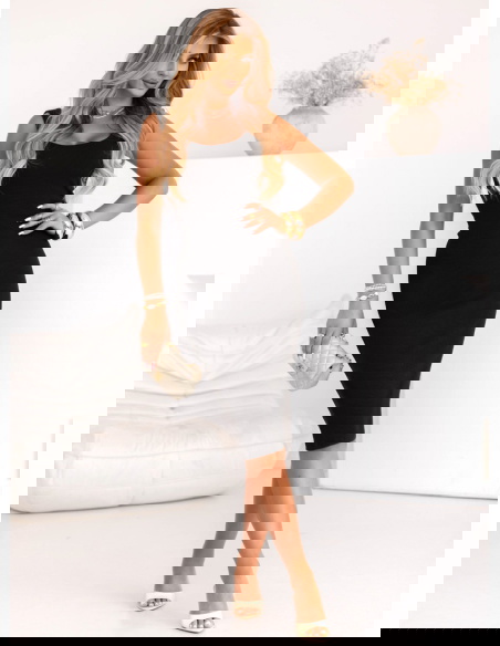 Czarna prążkowana sukienka midi na ramiączkach Laneaa