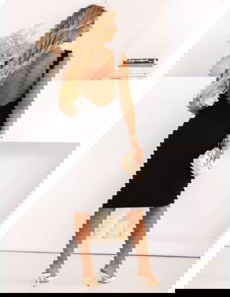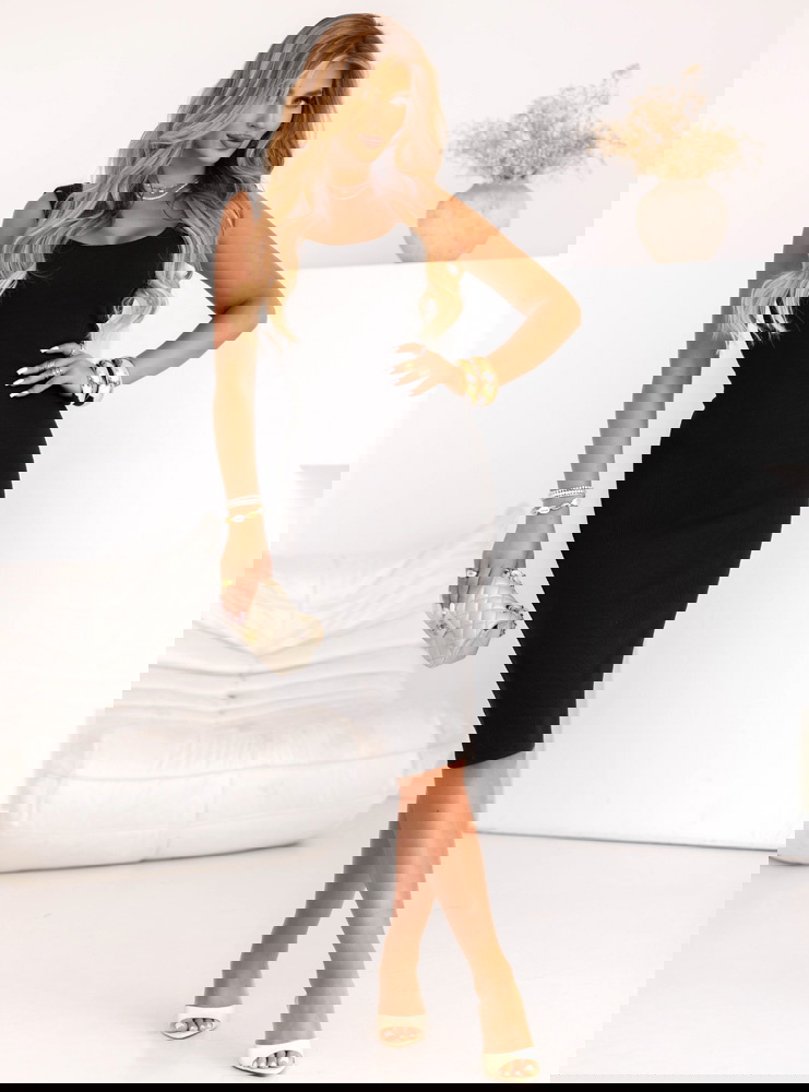 Czarna prążkowana sukienka midi na ramiączkach Laneaa to ponadczasowa propozycja, która nigdy nie wyjdzie z mody. Świetnie podkreśla sylwetkę i dodaje pewności siebie.