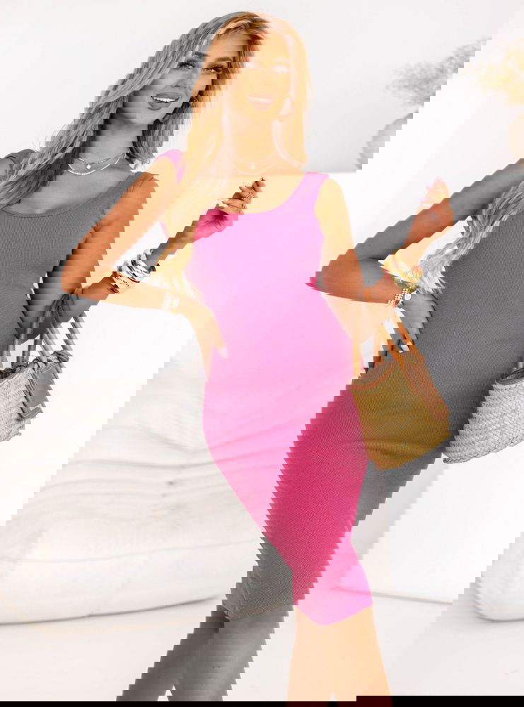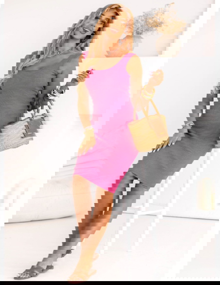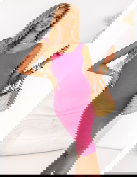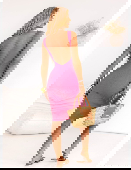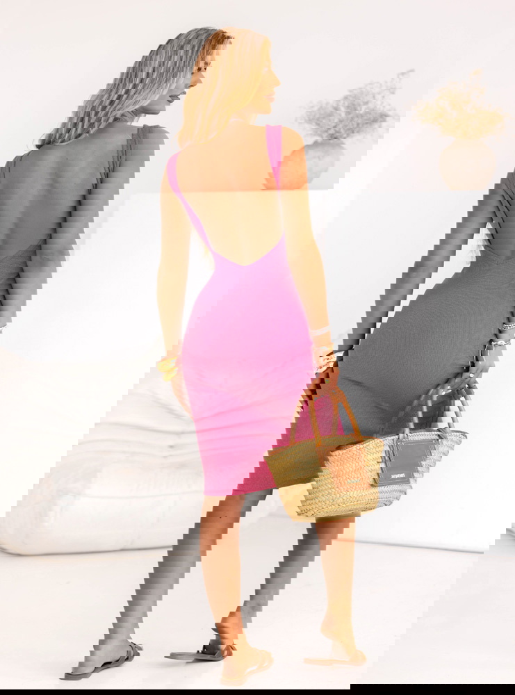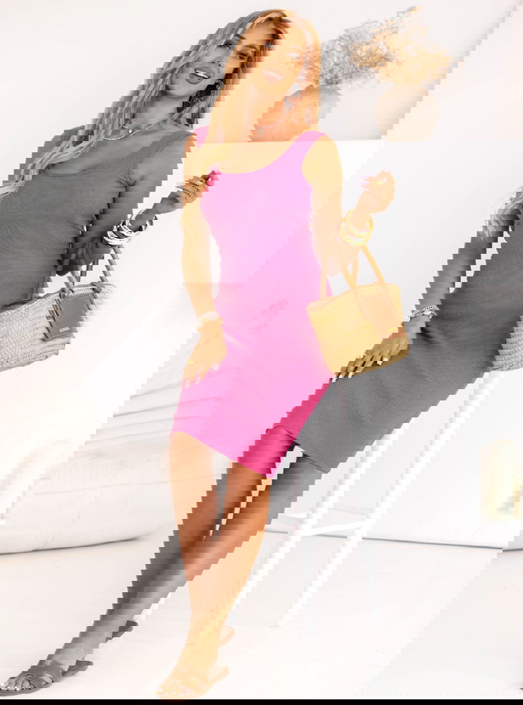 Prążkowana sukienka midi na ramiączkach Laneaa - fuksja to doskonały wybór dla kobiet, które cenią sobie styl, kobiecość i odrobinę odwagi. Ten model przyciąga uwagę intensywnym kolorem, który natychmiast dodaje energii i świeżości. Sukienka subtelnie podkreśla sylwetkę i pięknie eksponuje plecy, dzięki głębokiemu wycięciu z tyłu. Idealnie wpisuje się w letnie trendy i sprawia, że każda kobieta poczuje się wyjątkowo. Niezależnie od tego, czy nosisz ją na co dzień, czy na specjalną okazję – zawsze zrobi wrażenie. Długość midi dodaje jej elegancji, a jednocześnie nie ogranicza swobody ruchów. Ramiączka i dopasowany krój zapewniają świetne dopasowanie do ciała. To połączenie klasyki z nutą nowoczesności i śmiałego stylu. Fuksjowy odcień ożywi każdą stylizację i doda charakteru nawet najprostszym dodatkom. Jeśli szukasz sukienki, która łączy wygodę z kobiecym urokiem – właśnie ją znalazłaś. Prążkowana sukienka midi na ramiączkach – fuksja to model o prostym, ale efektownym kroju. Gładki przód oraz głęboko wycięte plecy tworzą intrygujące połączenie. Sukienka doskonale dopasowuje się do sylwetki, podkreślając kształty i dodając pewności siebie. Prążkowana struktura tkaniny optycznie wysmukla figurę. Minimalistyczny krój sprawia, że można ją stylizować na wiele sposobów.