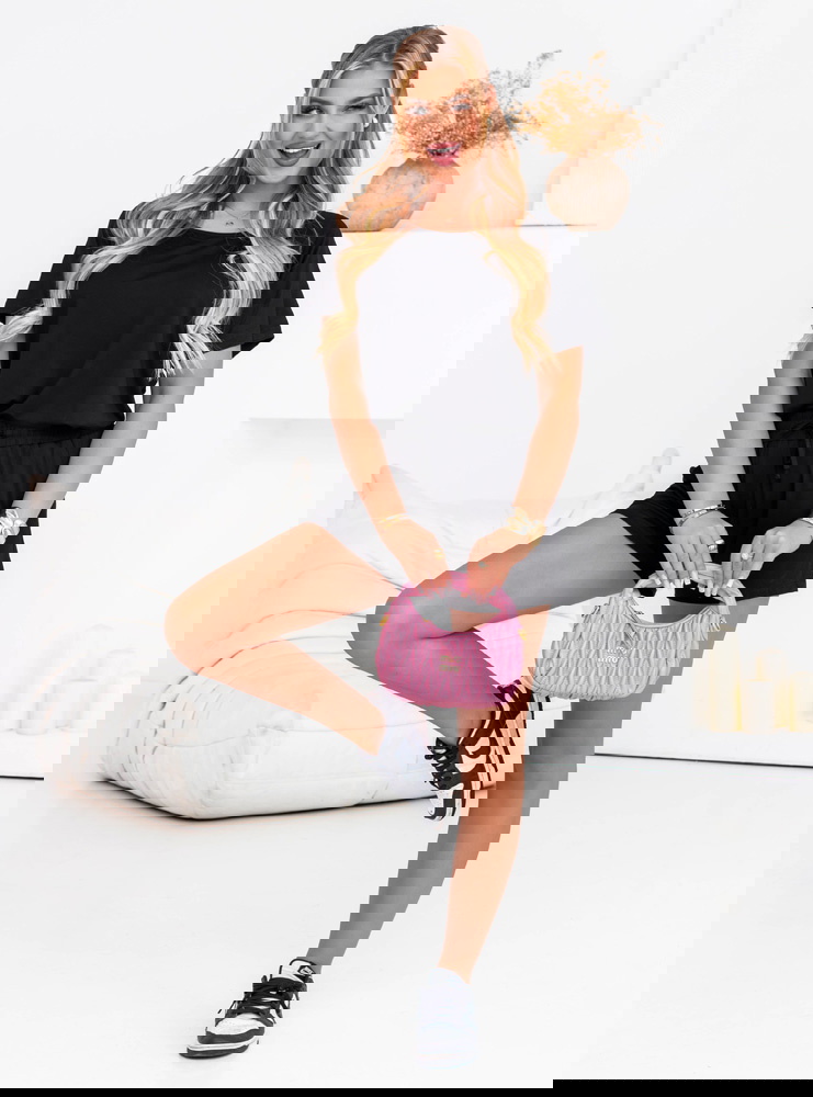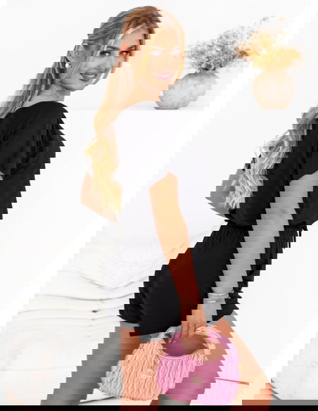 Czarny komplet bluzka i spodenki Davynn to zestaw, który błyskawicznie stanie się Twoim ulubionym wyborem na letnie dni. Już od pierwszego założenia poczujesz, jak wygodny i przyjemny w noszeniu może być modny outfit. Luźny krój kompletu pozwala czuć się swobodnie, a jednocześnie stylowo – zarówno podczas aktywnego dnia, jak i wieczornego relaksu. Koszulka z krótkim rękawem oraz klasycznym okrągłym dekoltem subtelnie podkreśla atuty sylwetki, pozostając przy tym niezwykle komfortowa. Spodenki, które idealnie komponują się z bluzką, posiadają praktyczne wiązanie umożliwiające perfekcyjne dopasowanie. Dodatkowym atutem są funkcjonalne kieszenie, dzięki którym zawsze masz pod ręką najważniejsze drobiazgi. Czarny kolor kompletu daje niemal nieograniczone możliwości stylizacji, świetnie łącząc się z różnymi dodatkami. Uniwersalność tego zestawu sprawia, że doskonale sprawdzi się zarówno podczas codziennych zajęć, jak i na mniej formalne spotkania. Dzięki niemu poczujesz się pewna siebie, modna, a zarazem naturalnie kobieca. Wygodny, stylowy i praktyczny – ten komplet jest wszystkim, czego potrzebujesz w swojej garderobie.