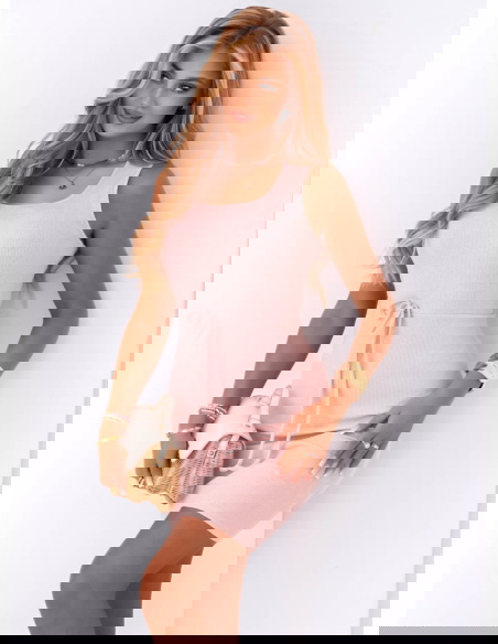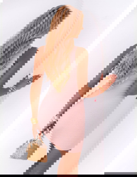 Pudrowa prążkowana sukienka na ramiączkach Roseltha