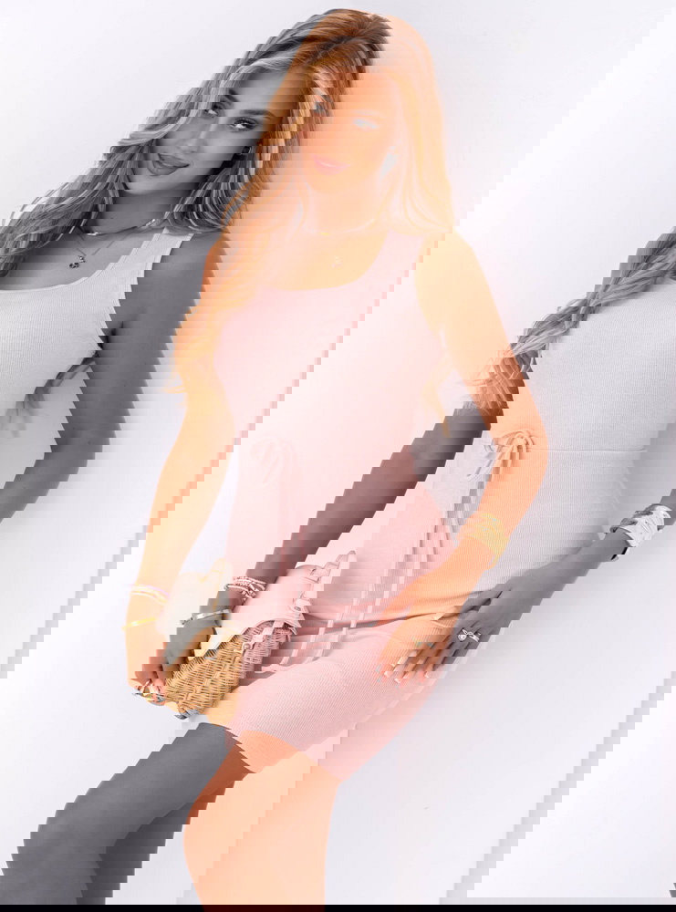 Pudrowa prążkowana sukienka na ramiączkach Roseltha to kwintesencja kobiecości i wygody w jednej, zgrabnej formie. Jej delikatny odcień różu wprowadza romantyczny i świeży akcent do każdej stylizacji. Dopasowany fason pięknie podkreśla sylwetkę, a jednocześnie jest na tyle elastyczny, by zapewnić swobodę ruchów przez cały dzień. Klasyczne ramiączka eksponują ramiona i nadają całości letniego, lekkiego charakteru. Wiązanie w talii pozwala na subtelne modelowanie figury i dodaje sukience uroku. To model, który sprawdzi się zarówno na wakacjach, jak i podczas miejskich spacerów. Minimalistyczny design pozwala na wiele możliwości stylizacyjnych – świetnie wygląda solo, ale też w połączeniu z jeansową kurtką czy lekkim kardiganem. Sukienka ma długość idealną na ciepłe dni – nie za krótką, ale wciąż zmysłową. Prążkowana struktura materiału dodaje jej charakteru i lekko wysmukla sylwetkę. To po prostu sukienka, w której chce się być – wygodna, urocza i gotowa na każdą okazję.