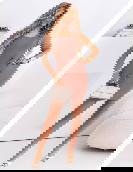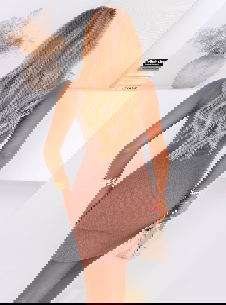 Prążkowana sukienka na ramiączkach Roseltha - mocha mousse