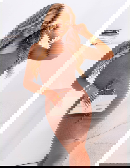 Prążkowana sukienka na ramiączkach Roseltha - mocha mousse to styl, który pokochasz od pierwszego założenia. Jej dopasowany krój pięknie podkreśla kobiece kształty, nie rezygnując przy tym z wygody. Ciepły, czekoladowy odcień mocha sprawia, że sukienka prezentuje się niezwykle elegancko i modnie. Delikatne ramiączka oraz klasyczny dekolt nadają jej lekkości, a wiązanie w talii podkreśla sylwetkę i dodaje uroku. To fason, który nie potrzebuje wielu dodatków, by wyglądać świetnie – sam w sobie robi wrażenie. Możesz założyć ją zarówno z sandałkami na co dzień, jak i z obcasami na wieczorne wyjście. Świetnie sprawdzi się również z ulubioną jeansową kurtką czy narzutką. Jest to sukienka, która łączy prostotę z nutą kobiecości i nowoczesności. Zdecydowanie wpisuje się w aktualne trendy i pasuje do wielu okazji. Jej uniwersalność sprawia, że stanie się jednym z Twoich ulubionych elementów garderoby.