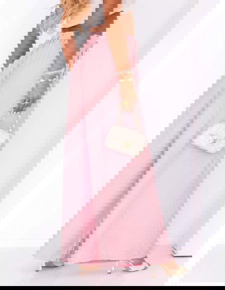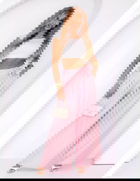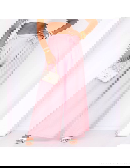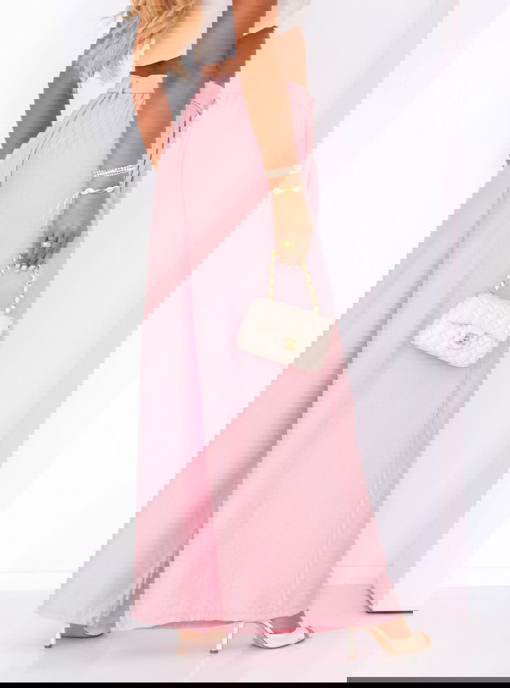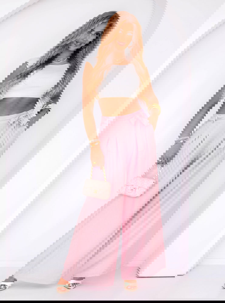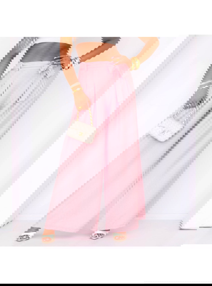 Pudrowe szerokie spodnie z paskiem Hateya to kobieca i niezwykle stylowa propozycja, która przyciąga spojrzenia subtelną elegancją. Ich delikatny odcień różu wprowadza lekkość do każdej stylizacji i pięknie podkreśla letni klimat. Szeroki krój zapewnia swobodę ruchów i wyjątkowy komfort przez cały dzień. Wysoki stan z materiałowym paskiem pięknie akcentuje talię, optycznie wydłużając nogi i wysmuklając sylwetkę. To model, który łączy w sobie klasykę z nowoczesnym podejściem do kobiecego stylu. Pudrowy róż nigdy nie wychodzi z mody – jest romantyczny, ale bardzo uniwersalny. Spodnie świetnie sprawdzą się w duecie z dopasowanym topem, elegancką koszulą lub lekkim t-shirtem. Ich zwiewny fason dodaje całości lekkości i wdzięku, idealnego na cieplejsze dni. To opcja, która z powodzeniem zastąpi sukienkę czy spódnicę, jeśli chcesz wyglądać elegancko, ale czuć się swobodnie. Te spodnie to pewny wybór na lato – kobiece, wygodne i zawsze na czasie.