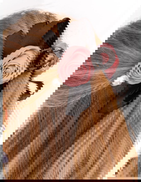 Klamra do włosów z różyczkami Allisyn - brudny róż to romantyczny i wyjątkowo kobiecy dodatek, który przyciąga spojrzenia subtelnym urokiem. Jej miękki, zgaszony odcień pięknie komponuje się z różnymi typami urody i stylizacjami. Delikatne różyczki w formie wypukłej dekoracji nadają jej lekko bajkowego charakteru. To ozdoba, która z prostego upięcia potrafi stworzyć elegancką, przemyślaną fryzurę.