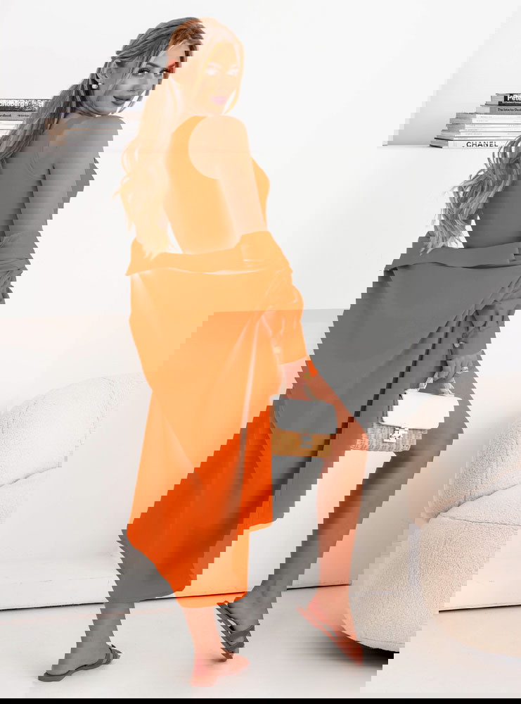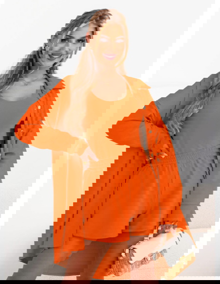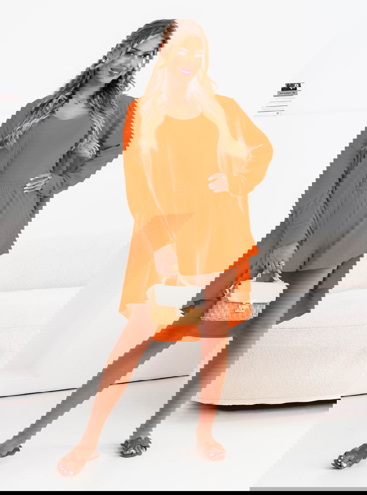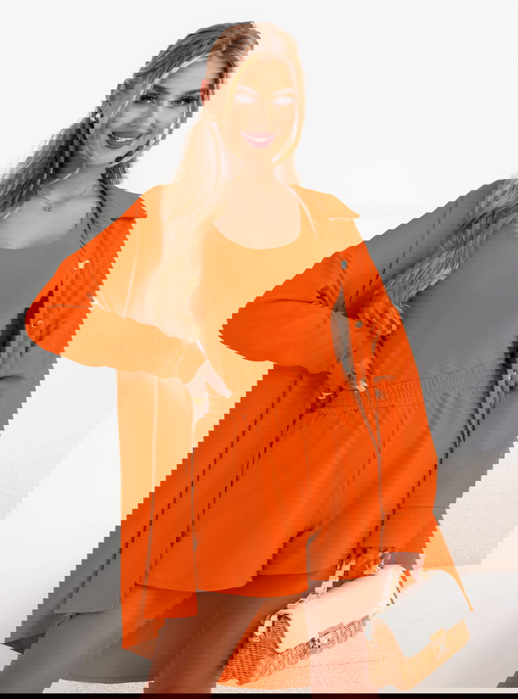Pomarańczowy komplet 3 częściowy Naide to świetna baza do wielu stylizacji. Kolor dodaje energii, a fasony są przyjazne dla sylwetki.
