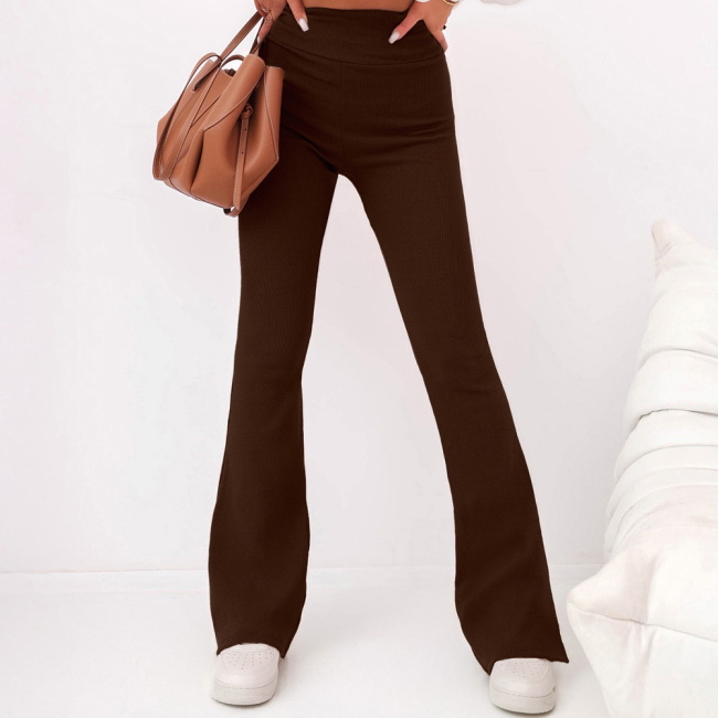 Czekoladowe prążkowane spodnie z rozszerzanymi nogawkami Gloyd