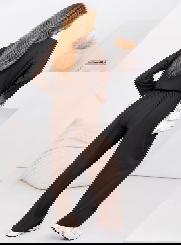Czekoladowy komplet bluzka i spodnie Johnnie to stylowa odpowiedź na codzienne modowe dylematy. Zapewnia komfort, ale nie rezygnuje z kobiecego, przemyślanego wyglądu.