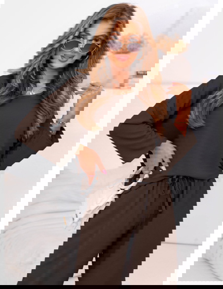 Czekoladowy komplet bluzka i spodnie Johnnie