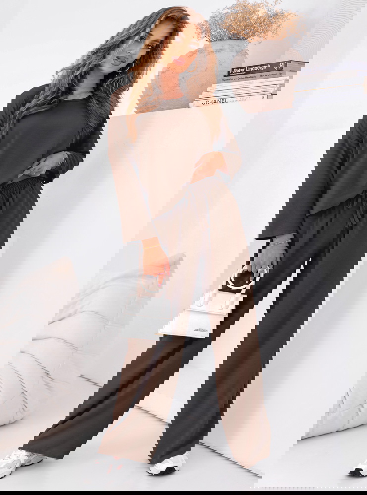 Czekoladowy komplet bluzka i spodnie Johnnie to doskonały wybór dla kobiet, które kochają styl i wygodę w jednym. Ten zestaw to idealna opcja na dni, kiedy chcesz wyglądać modnie bez zbędnego wysiłku. Bluzka o luźnym kroju zapewnia swobodę ruchów, a jej prosty fason doskonale wpisuje się w nowoczesny casual. Spodnie z szerokimi nogawkami dodają całości lekkości i optycznie wydłużają sylwetkę. Elastyczna talia z wiązaniem sprawia, że całość układa się komfortowo i estetycznie. Głęboki czekoladowy kolor jest wyjątkowo stylowy, a przy tym uniwersalny – pasuje do niemal każdego dodatku. To komplet, który wygląda świetnie w duecie, ale jego elementy możesz też nosić osobno. Wystylizujesz go na sportowo, codziennie lub bardziej elegancko – zależnie od dodatków. Niezależnie od sytuacji, zawsze będziesz wyglądać spójnie, stylowo i świeżo. Ten zestaw to prosty sposób na efektowny look bez zbędnych kombinacji.