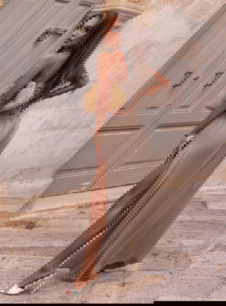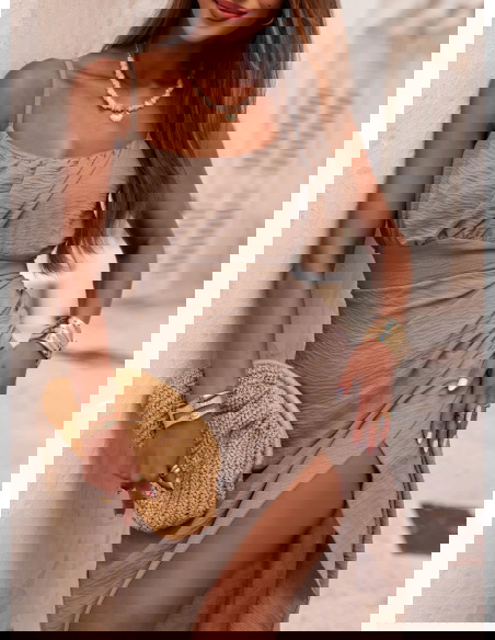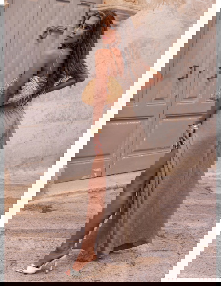 Długa sukienka na ramiączkach z rozcięciem Agape - mocha mousse to kwintesencja kobiecości w subtelnej, nowoczesnej odsłonie. To model, który od pierwszej chwili przyciąga wzrok swoją elegancją i prostotą zarazem. Jej delikatny odcień mocha mousse idealnie współgra z letnią opalenizną i pięknie komponuje się z naturalnym otoczeniem. Ramiączka nadają lekkości i podkreślają ramiona, a wyraźne rozcięcie dodaje pazura i uwodzicielskiego charakteru. Sukienka delikatnie opinająca talię podkreśla figurę i wysmukla sylwetkę. To propozycja dla kobiet, które lubią czuć się wyjątkowo i pewnie siebie, nie rezygnując przy tym z komfortu. Świetnie wygląda w ruchu – subtelnie faluje przy każdym kroku, dodając sylwetce lekkości. Jej uniwersalność pozwala na wiele różnych stylizacji – od plażowego luzu po elegancki wieczór. To sukienka, która sprawdzi się zarówno podczas romantycznej kolacji, jak i letniego spaceru w wąskich uliczkach kurortu. Stylowa, kobieca i z klasą – z pewnością podbije niejedno serce.