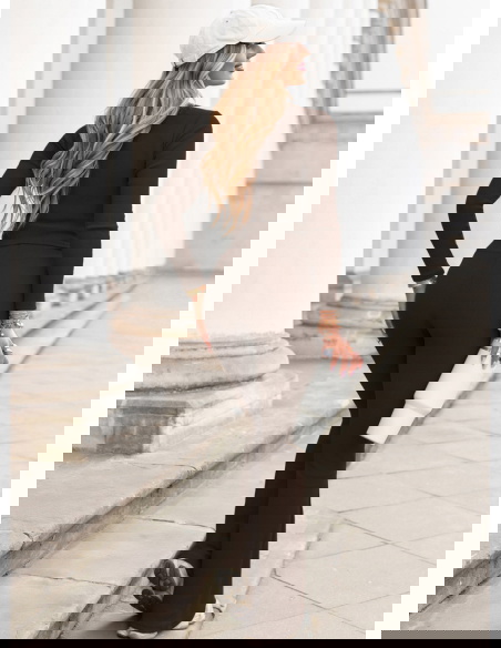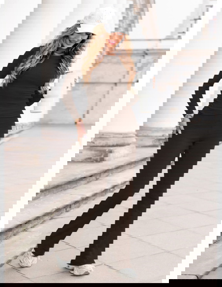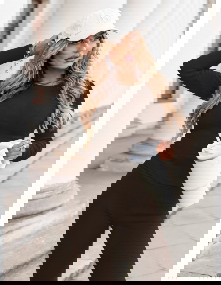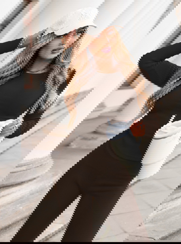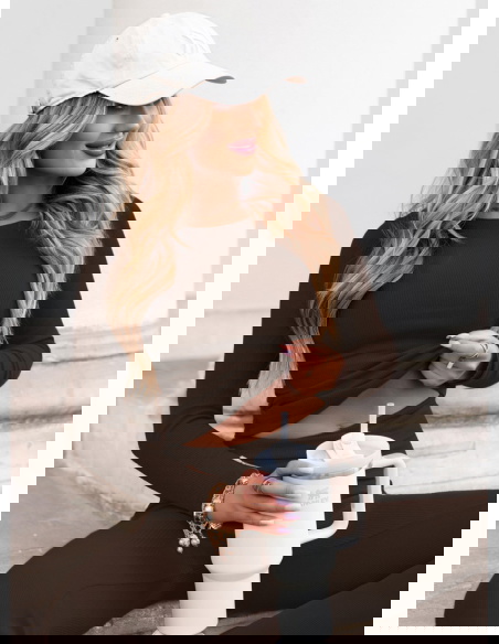 Czekoladowy prążkowany komplet dopasowana bluzka i spodnie Dyanna to wyjątkowy zestaw, który łączy w sobie nowoczesny styl i codzienną wygodę. Głęboki, czekoladowy odcień sprawia, że całość prezentuje się elegancko i ponadczasowo. Dopasowana bluzka pięknie podkreśla linię sylwetki, a spodnie z rozszerzaną nogawką optycznie wysmuklają i wydłużają nogi. Prążkowana faktura nadaje stylizacji lekkości i modnego charakteru. To idealny wybór zarówno na spokojny dzień w domu, jak i aktywne wyjście na miasto. Uniwersalność tego kompletu pozwala łączyć go z różnymi dodatkami, tworząc zupełnie różne odsłony stylu. W zestawieniu ze sportowymi butami i czapką z daszkiem nabiera luzu, a z butami na obcasie i elegancką torebką staje się bardziej szykowny. Komplet daje ogrom możliwości stylizacyjnych, dzięki czemu szybko stanie się bazą Twojej garderoby. To połączenie komfortu i mody, które wyróżni Cię w każdej sytuacji.