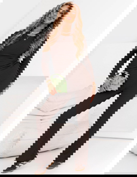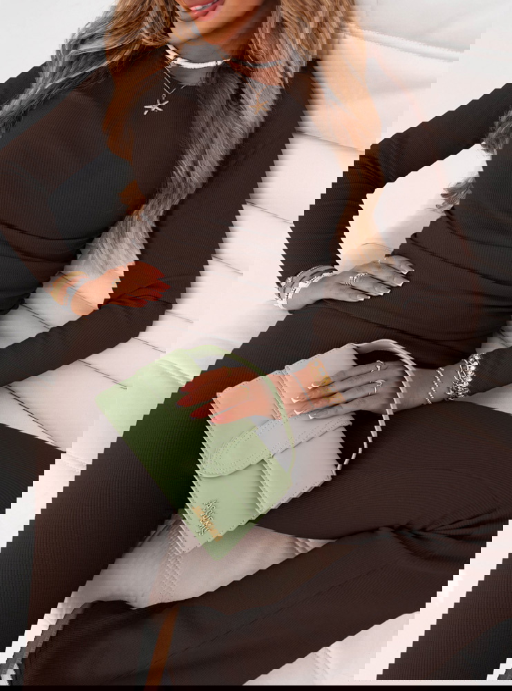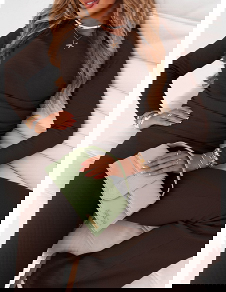 Czekoladowy prążkowany komplet dopasowana bluzka i spodnie Logan to stylizacja, która w prosty sposób łączy kobiecość, wygodę i nowoczesny charakter. Głęboki, czekoladowy kolor nadaje całości elegancji, a prążkowana struktura dodaje subtelnego uroku. Dopasowana bluzka pięknie podkreśla linię sylwetki, tworząc kobiecy i zmysłowy efekt. Spodnie o zwężającym się, a przy tym lekko rozszerzanym fasonie wydłużają nogi i optycznie wysmuklają figurę. Komplet zachwyca swoją uniwersalnością – możesz nosić go zarówno w codziennych stylizacjach, jak i w bardziej casualowych zestawieniach. To propozycja idealna dla kobiet, które cenią sobie minimalizm połączony z modowym akcentem. Dzięki prostemu krojowi łatwo dopasujesz do niego różne dodatki – od sportowych sneakersów, po eleganckie szpilki. Całość świetnie wpisuje się w aktualne trendy, oferując wygodę w modnym wydaniu. To komplet, w którym z łatwością stworzysz stylizację pasującą do Twojego charakteru.