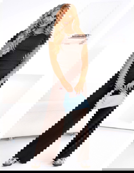 Czekoladowy komplet prążkowany bluzka i szerokie spodnie Delayna to propozycja, która łączy wygodę z modnym wyglądem. Jego prosty, ale efektowny krój sprawia, że prezentuje się stylowo i uniwersalnie. Dopasowana bluzka podkreśla kobiecą sylwetkę, a szerokie spodnie dodają lekkości i swobody. Stonowany kolor czekolady sprawia, że komplet łatwo zestawić z różnymi dodatkami. To świetny wybór na co dzień, gdy chcesz czuć się komfortowo i wyglądać modnie. Komplet sprawdzi się w wielu okazjach, od spacerów po spotkania towarzyskie. To baza, którą z łatwością wykorzystasz w swojej garderobie na wiele sposobów.