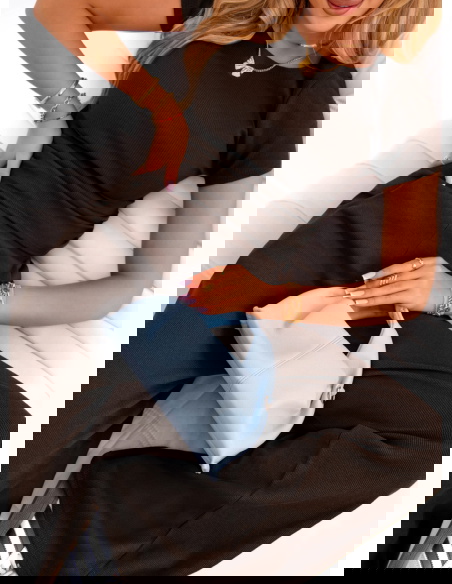 Czekoladowy komplet prążkowany bluzka i szerokie spodnie Delayna