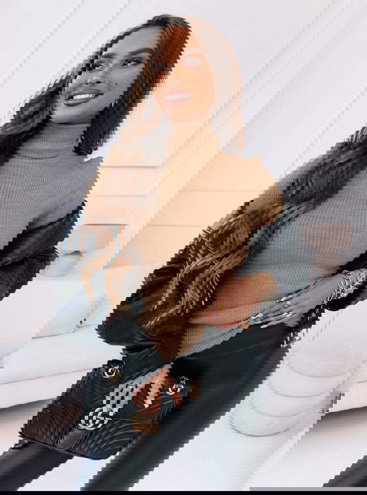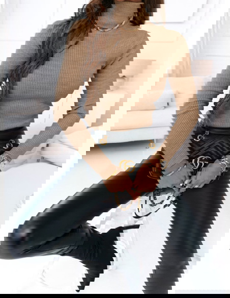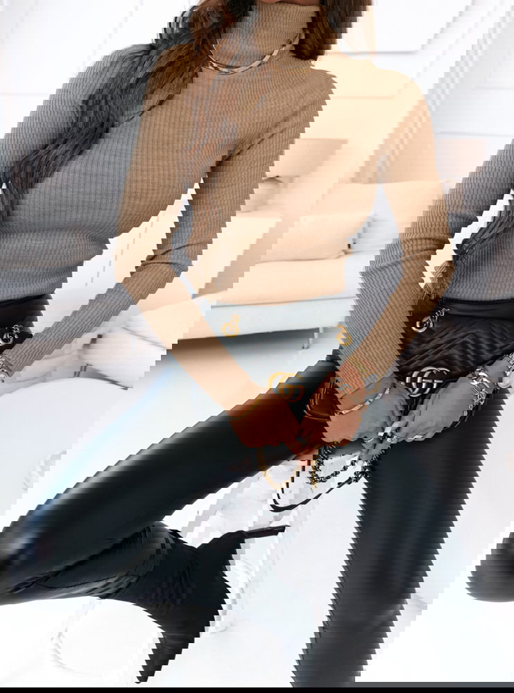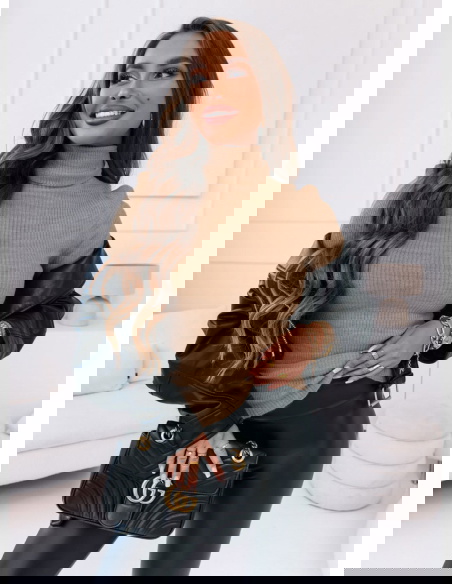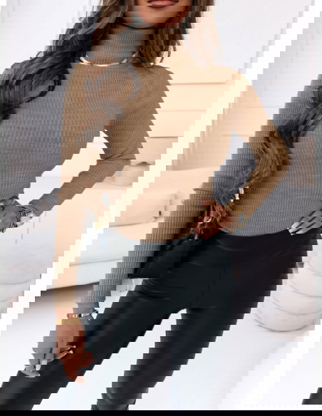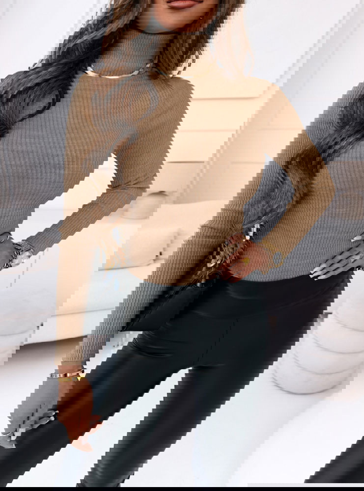 Sweter z golfem i długimi rękawami Perla - mocha mousse