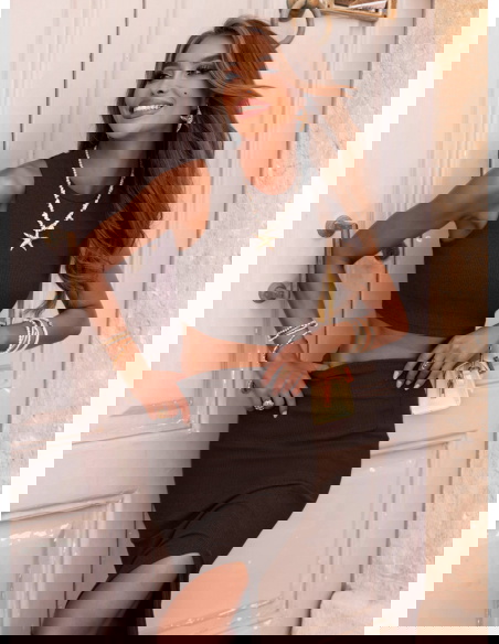 Czekoladowy prążkowany komplet top i...