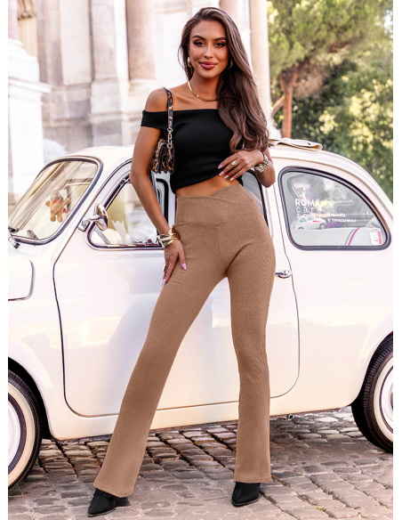 Beżowe prążkowane spodnie z długimi nogawkami Sucrose to nowoczesna propozycja dla kobiet, które cenią wygodę połączoną z klasą. Subtelny odcień beżu sprawia, że łatwo dopasować je do różnych stylizacji. To spodnie, które mogą stać się Twoją bazą do tworzenia codziennych i bardziej eleganckich outfitów. Prążkowana struktura dodaje charakteru, ale wciąż pozostaje delikatna i kobieca. Krój z długimi nogawkami pięknie wydłuża sylwetkę i optycznie modeluje nogi. Spodnie dobrze układają się na ciele i nie przytłaczają figury. Wysoki stan podkreśla talię i sprawia, że sylwetka prezentuje się smukło. To element garderoby, który możesz założyć niezależnie od pory dnia. Dzięki nim zbudujesz look zarówno casualowy, jak i bardziej wyjściowy. Model wpisuje się w najnowsze trendy kolekcji prefall, oferując świeże spojrzenie na klasykę.