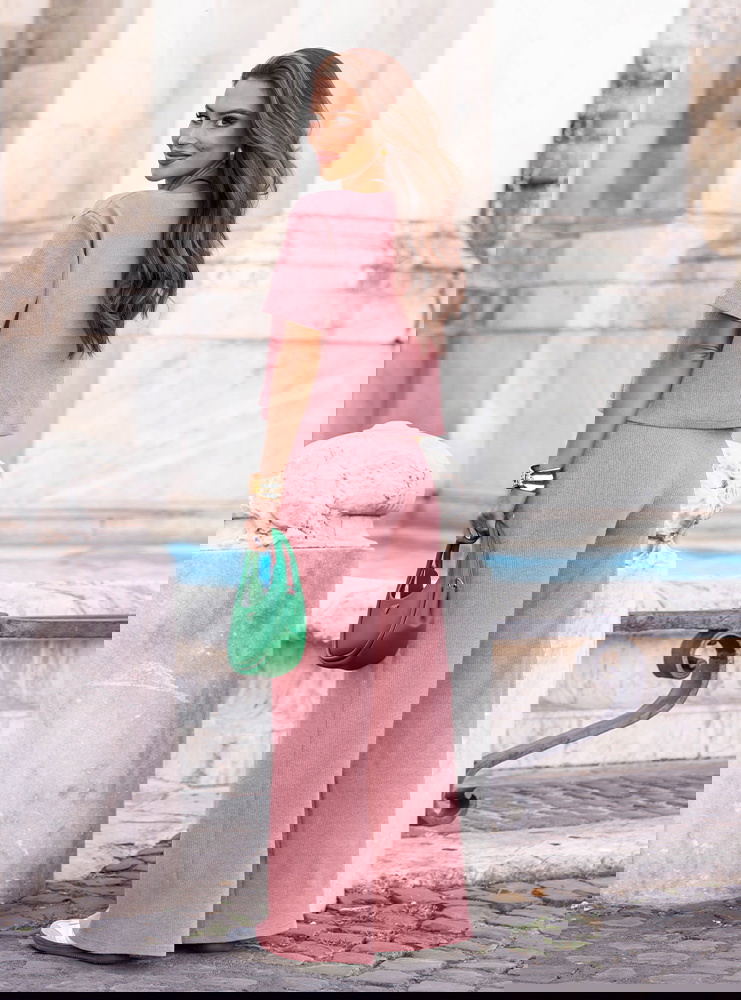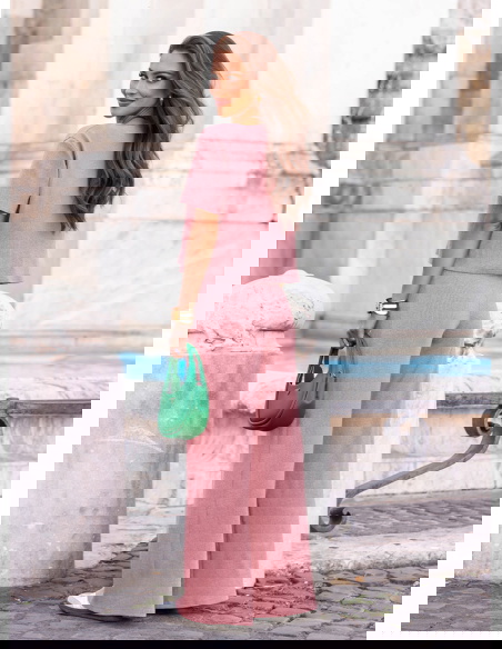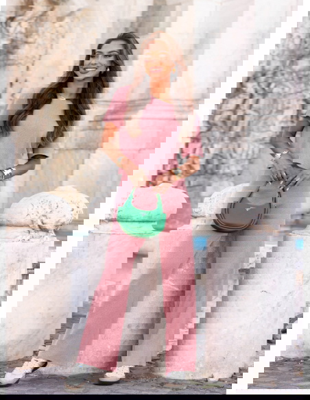 Komplet prążkowany bluzka i szerokie spodnie Malvera - brudny róż to wyjątkowy zestaw, który zachwyca prostotą i kobiecym charakterem. Idealny na dni, kiedy chcesz wyglądać stylowo bez zbędnego wysiłku. Połączenie luźniejszego topu i szerokich spodni daje efekt niewymuszonej elegancji i pełnej swobody. Kolor brudnego różu to subtelna, ale wyrazista propozycja – pięknie współgra z wieloma dodatkami i każdą porą roku. Ten komplet to doskonały wybór dla kobiet, które cenią sobie wygodę, ale nie chcą rezygnować z modowego wyrazu. Zestaw świetnie sprawdza się zarówno jako total look, jak i noszony osobno – daje wiele możliwości stylizacji. Prążkowana faktura dodaje całości ciekawego akcentu, który przełamuje jednolitość formy. To komplet, który wprowadza świeżość do Twojej garderoby i przyciąga spojrzenia. Jest lekki, przewiewny i idealnie wpisuje się w klimat miejskich dni oraz letnich wieczorów. Pochodzi z kolekcji prefall, co sprawia, że będzie świetnym wyborem na nadchodzący sezon przejściowy.