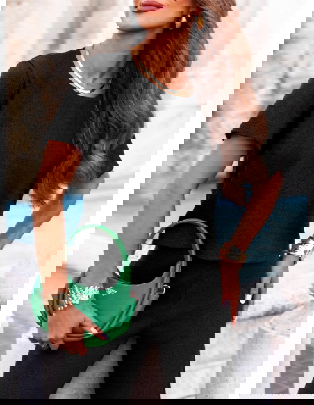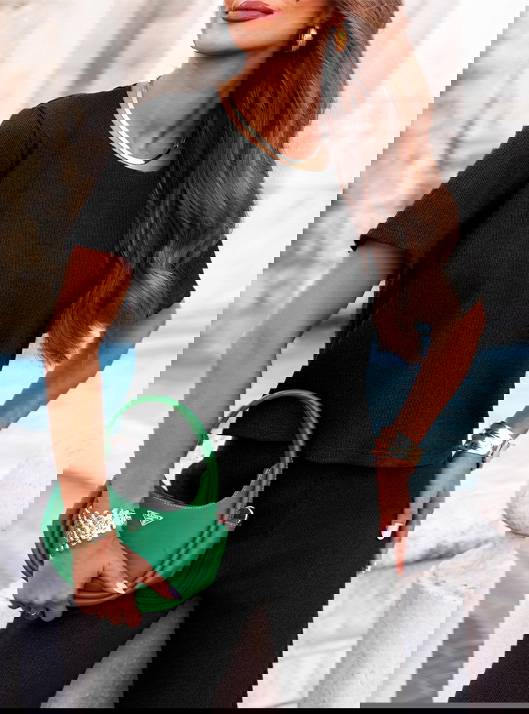 Czarny komplet prążkowany bluzka i szerokie spodnie Malvera to stylizacja, która łączy wygodę z kobiecym wyczuciem trendów. Uniwersalny kolor i ponadczasowy fason czynią go niezastąpionym elementem garderoby.
