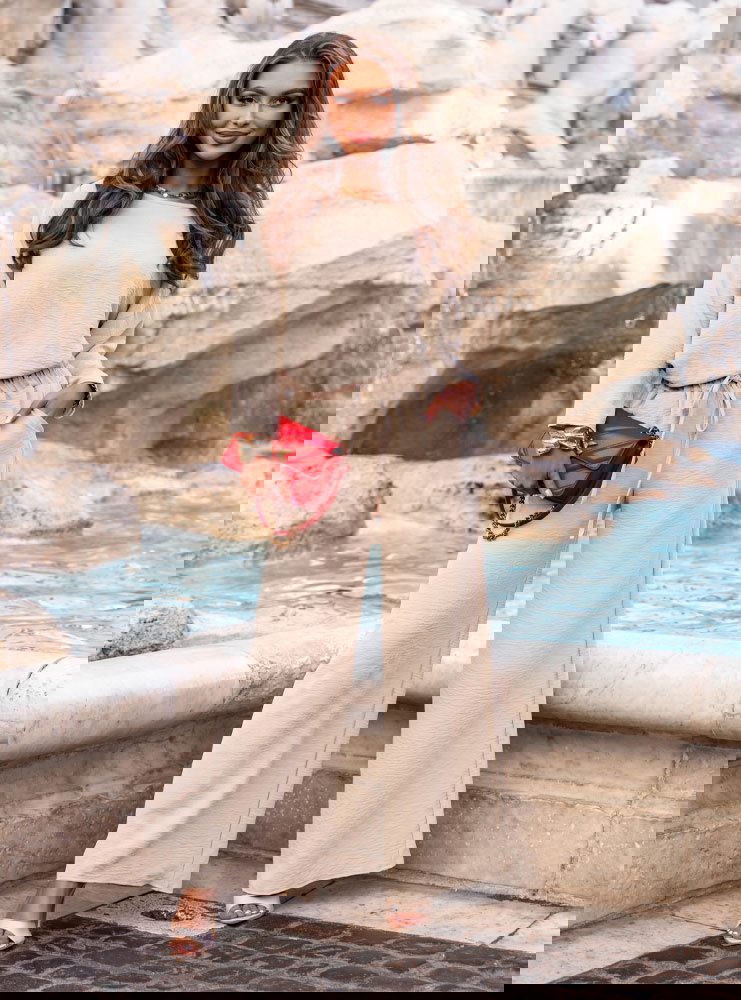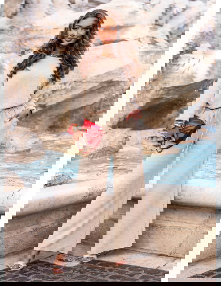 Beżowy komplet bluzka i spodnie Aspazja to kwintesencja kobiecej elegancji w codziennym wydaniu. Subtelny, klasyczny kolor tworzy neutralną bazę, która pasuje do wielu dodatków i stylizacji. To propozycja, która idealnie wpisuje się w aktualne trendy – stonowana, ale wyrazista. Krój zestawu zapewnia pełną swobodę ruchu, a jednocześnie podkreśla atuty sylwetki. Długi rękaw bluzki sprawia, że komplet świetnie sprawdza się również w chłodniejsze dni, a elastyczny pas spodni dodaje komfortu. W zestawie wszystko jest doskonale zrównoważone – elegancja spotyka się tu z luzem. Dzięki temu komplet sprawdzi się zarówno w casualowym, jak i bardziej szykownym wydaniu. Stylowy detal w postaci wiązania w pasie nadaje lekkości i kobiecego wyrazu. To propozycja, która doskonale odzwierciedla ducha kolekcji prefall – przygotowana na przejściową pogodę i zmienne potrzeby garderoby. Ten komplet sprawi, że będziesz wyglądać świetnie bez zbędnego wysiłku.