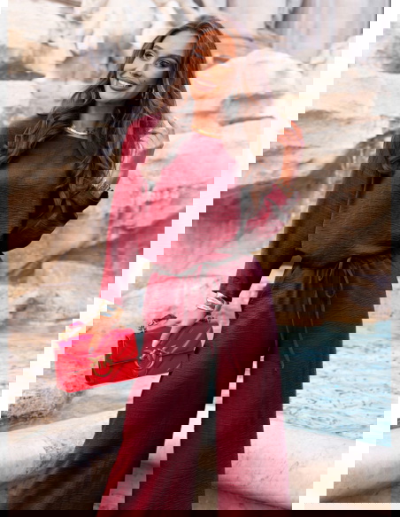 Bordowy komplet bluzka i spodnie Aspazja