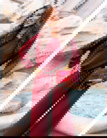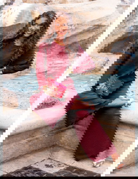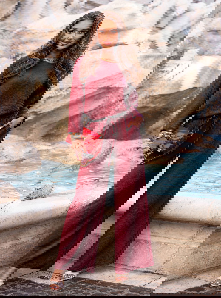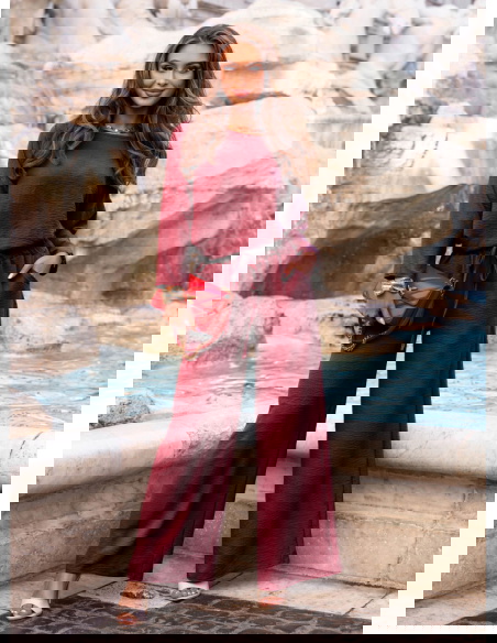 Bordowy komplet bluzka i spodnie Aspazja to idealne połączenie wyrafinowanej elegancji i wygody w kobiecym wydaniu. Kolor głębokiego burgundu przyciąga wzrok, dodaje klasy i pięknie podkreśla urodę. To komplet, który sam w sobie tworzy gotową stylizację, a jednocześnie daje wiele możliwości stylizacyjnych. Bluzka o swobodnym kroju oraz szerokie spodnie z wiązaniem w pasie tworzą harmonijny i bardzo nowoczesny duet. Stylowy, ale nieprzesadzony – idealny dla kobiet ceniących subtelną pewność siebie. Komplet świetnie sprawdzi się w sezonie przejściowym, szczególnie jako część kolekcji prefall, gdy szukamy czegoś wygodnego, a jednocześnie stylowego. Niezależnie od sylwetki, ten zestaw prezentuje się kobieco i elegancko. Bordowy odcień dodaje energii, ale zachowuje elegancki charakter. To doskonała propozycja, kiedy chcesz wyglądać z klasą – ale bez zbędnego wysiłku. Wystarczy dodać ulubione akcesoria, by nadać całości bardziej dziennego lub wieczorowego charakteru.