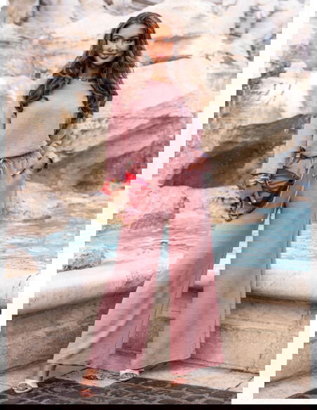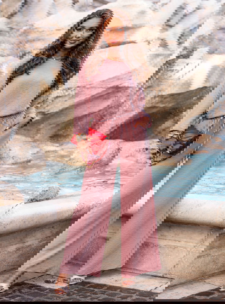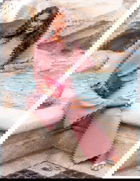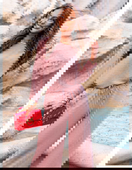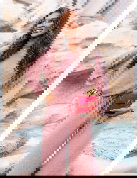 Komplet bluzka i spodnie Aspazja - brudny róż to esencja kobiecej swobody w nowoczesnym wydaniu. Ten zestaw to idealna propozycja dla kobiet, które lubią wyglądać stylowo i czuć się komfortowo przez cały dzień. Subtelny odcień brudnego różu sprawia, że całość prezentuje się niezwykle świeżo, a jednocześnie z klasą. Luźna bluzka i szerokie spodnie tworzą lekki, harmonijny duet, który pięknie układa się na sylwetce i daje ogromną swobodę ruchów. To komplet, który nie wymaga dodatków, by wyglądać efektownie, ale jednocześnie daje pole do stylizacyjnej zabawy. Doskonale sprawdzi się w dni, gdy zależy Ci na wygodzie, ale nie chcesz rezygnować z eleganckiego looku. Stylizacja z jego udziałem jest prosta, ale wyrazista – dokładnie taka, jakiej potrzebujemy na co dzień. Kolor brudnego różu pięknie podkreśla opaleniznę i sprawia, że każda kobieta wygląda w nim promiennie. Model ten doskonale wpisuje się w charakter kolekcji prefall, która łączy komfort z miejskim stylem. Jeśli szukasz modnego, ale uniwersalnego zestawu – to będzie strzał w dziesiątkę.