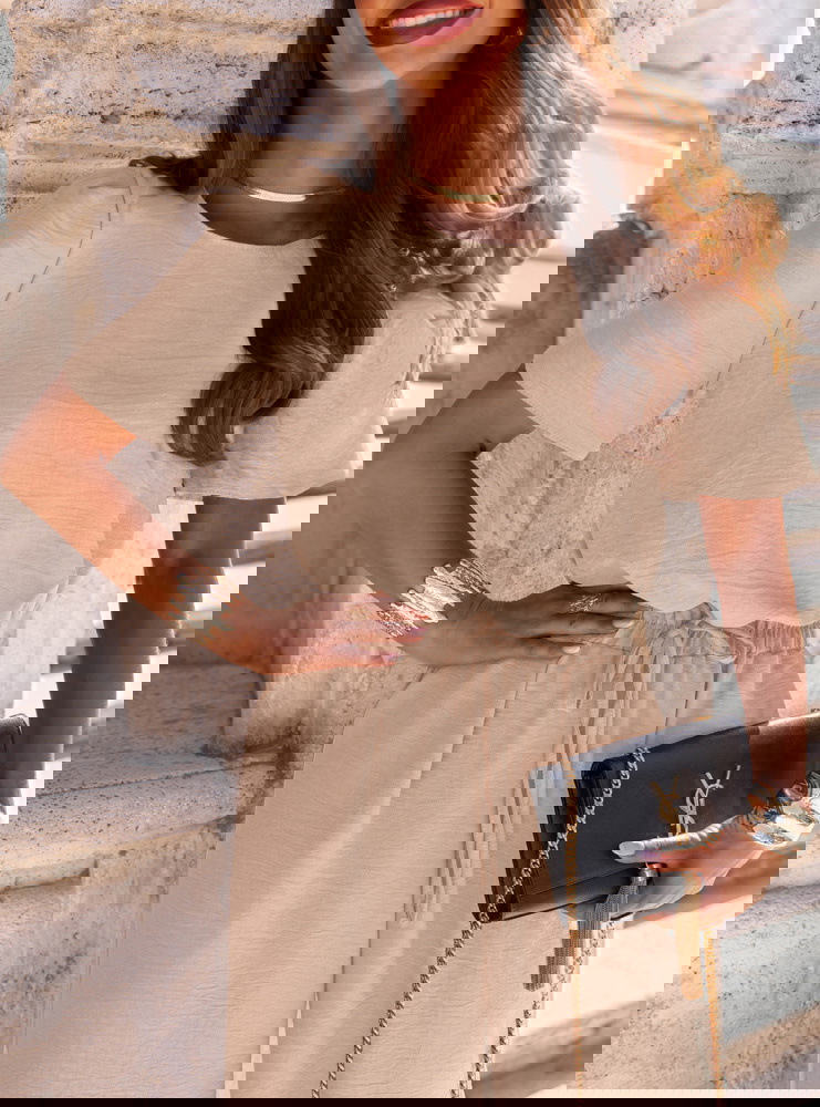 Beżowy komplet bluzka i szerokie spodnie Mascia to doskonały wybór dla kobiet, które lubią wyglądać stylowo, ale bez przesadnego wysiłku. To zestaw, który łączy nowoczesność z uniwersalnością i sprawdzi się w wielu codziennych sytuacjach. Jego największym atutem jest prostota, która nie znudzi się po jednym sezonie. Krótsza bluzka z klasycznym dekoltem i krótkim rękawem tworzy zgrany duet z luźnymi spodniami o szerokich nogawkach. Całość prezentuje się bardzo swobodnie, ale wciąż kobieco i z klasą. Beżowy kolor dodaje elegancji i sprawia, że komplet pasuje zarówno do jasnych, jak i ciemniejszych dodatków. Stylowe wiązanie w talii dodaje lekkości i pozwala subtelnie zaznaczyć sylwetkę. To look, który idealnie wpisuje się w klimat przejściowego sezonu. W kolekcji prefall ten model to prawdziwa perełka – wygodny, a jednocześnie gotowy na każdą okazję. Jeśli szukasz czegoś, co sprawdzi się zarówno w miejskiej dżungli, jak i w spokojniejszym klimacie, ten komplet będzie strzałem w dziesiątkę.