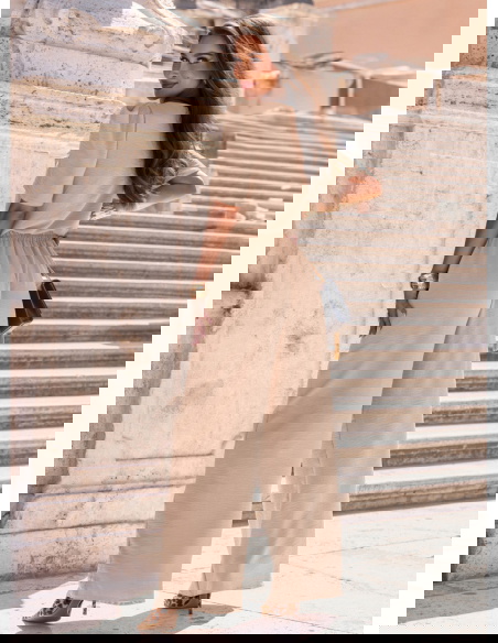 Beżowy komplet bluzka i szerokie spodnie Mascia