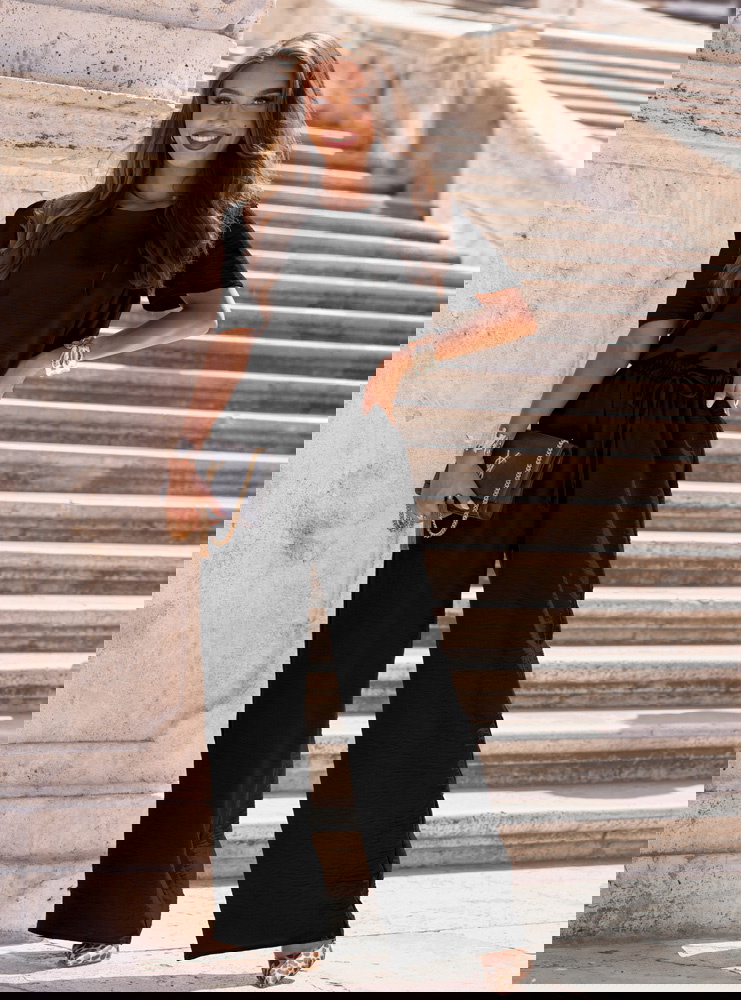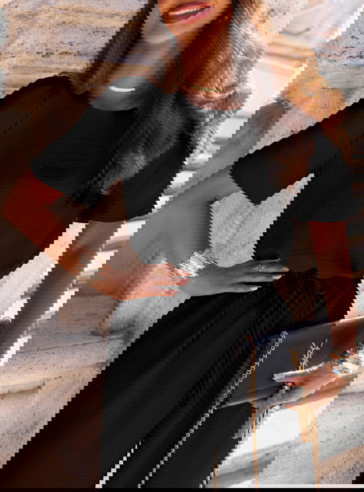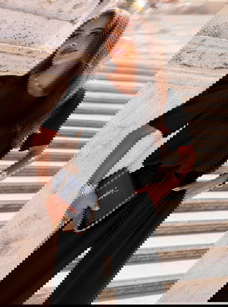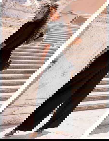 Czarny komplet bluzka i szerokie spodnie Mascia to esencja współczesnego stylu – prosty, wygodny, a jednocześnie niezwykle kobiecy. Klasyczny kolor pozwala na dowolne eksperymenty z dodatkami.