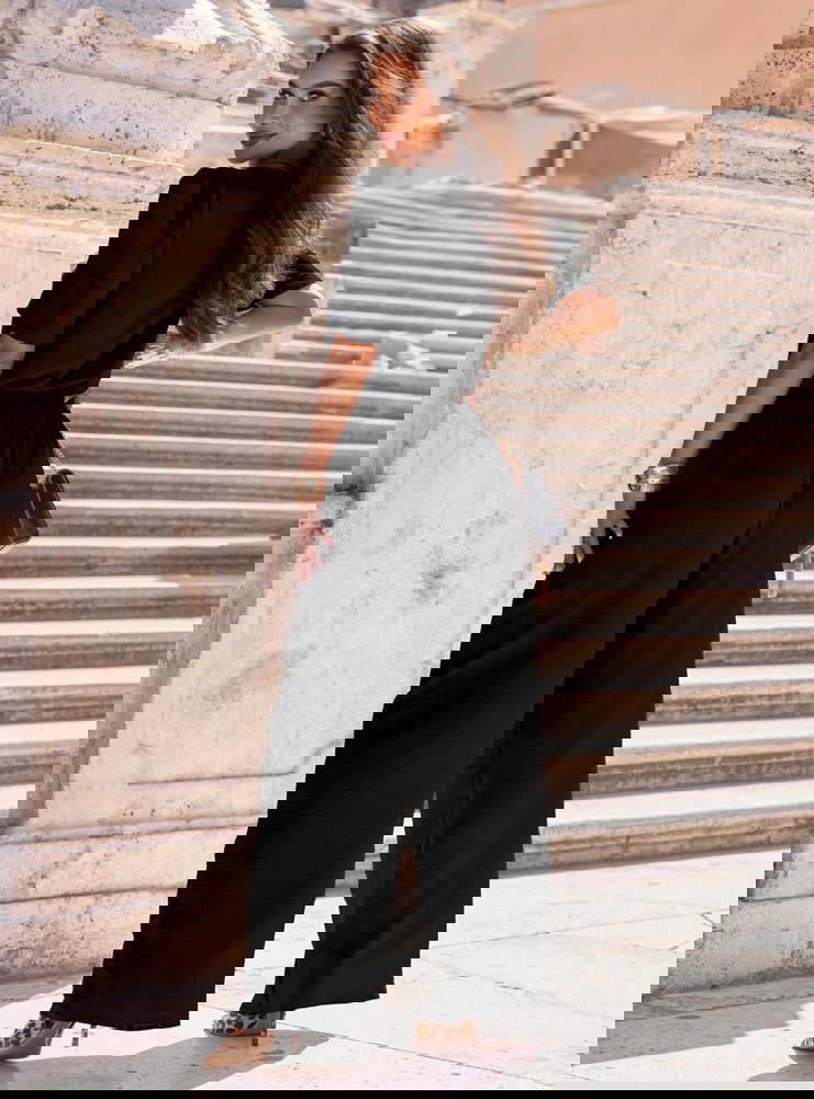 Czarny komplet bluzka i szerokie spodnie Mascia to must-have w garderobie każdej kobiety, która ceni nowoczesną prostotę. To idealne rozwiązanie, gdy chcesz wyglądać stylowo bez zbędnych komplikacji. Elegancka czerń zawsze robi wrażenie – niezależnie od okazji czy dodatków. Ten zestaw łączy w sobie klasyczny styl z nutą miejskiej nonszalancji. Krótkorękawowa bluzka i szerokie spodnie tworzą duet, który wygląda lekko, ale prezentuje się bardzo efektownie. Krój został zaprojektowany tak, aby pięknie układał się na sylwetce i zapewniał komfort przez cały dzień. To komplet, który możesz nosić razem lub osobno – w obu wersjach prezentuje się równie dobrze. Świetnie sprawdzi się w sezonie przejściowym, idealnie wpisując się w założenia kolekcji prefall. Nie wymaga wiele, by stworzyć z nim dopracowaną stylizację – wystarczy dodać torebkę, buty i gotowe. Jeśli szukasz stylizacji gotowej do założenia prosto z wieszaka, właśnie ją znalazłaś.