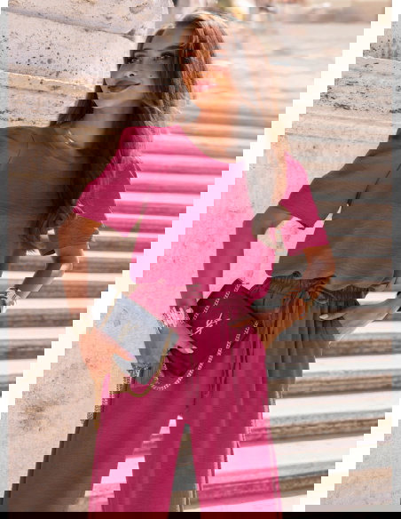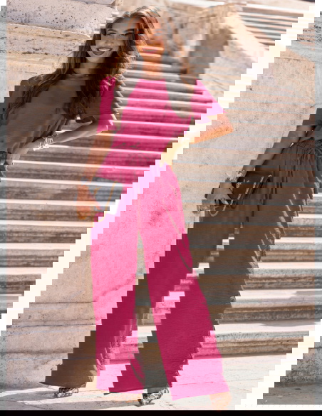 Komplet bluzka i szerokie spodnie Mascia - fuksja