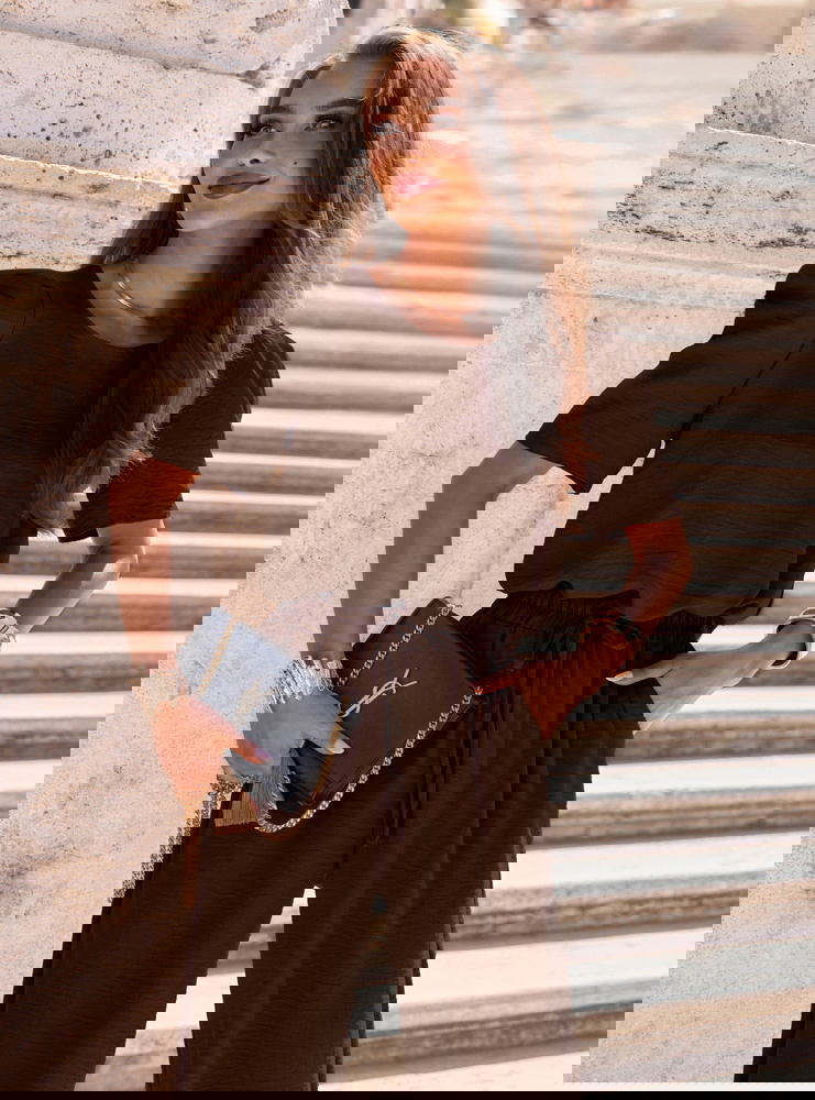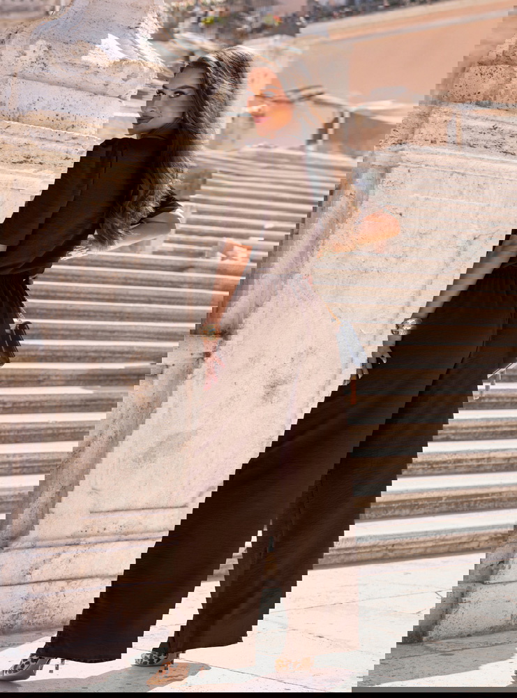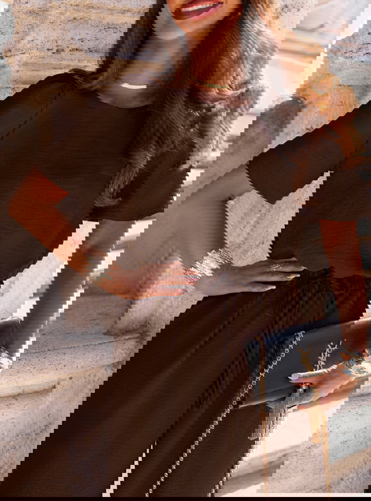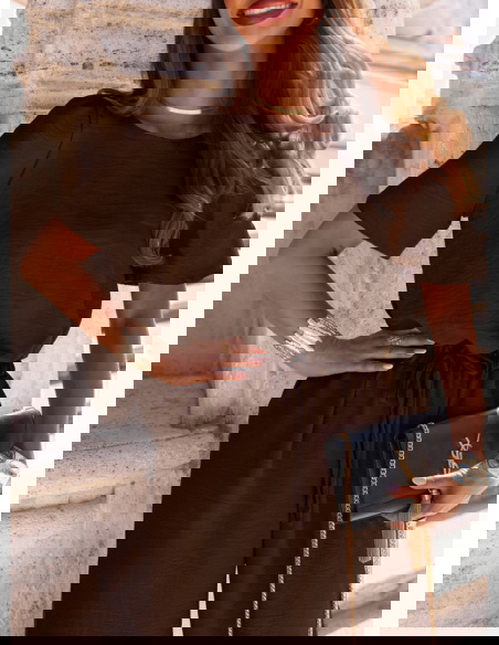 Czekoladowy komplet bluzka i szerokie spodnie Mascia to propozycja, która zachwyci każdą kobietę ceniącą wygodę i styl w codziennym wydaniu. Kolor głębokiej czekolady wprowadza nutę elegancji i klasy, a jednocześnie pozostaje niezwykle uniwersalny. Ten komplet to połączenie luzu z kobiecym wyczuciem stylu – idealne na wiele okazji. Bluzka z krótkim rękawem i swobodnym fasonem świetnie współgra z szerokimi spodniami, które nadają sylwetce lekkości. Całość prezentuje się niezwykle harmonijnie i modnie, wpisując się w aktualne trendy z kolekcji prefall. To jeden z tych zestawów, które sprawiają, że nie musisz długo zastanawiać się, co założyć – wystarczy jeden komplet, by wyglądać doskonale. Czekoladowy odcień pięknie komponuje się z dodatkami w złocie, beżu lub czerni. Stylizacja świetnie wygląda zarówno z butami na obcasie, jak i w bardziej casualowej wersji z płaskimi mokasynami. To doskonała propozycja dla kobiet, które lubią czuć się swobodnie, a jednocześnie stylowo. Ten komplet to must-have w Twojej szafie na nadchodzący sezon.