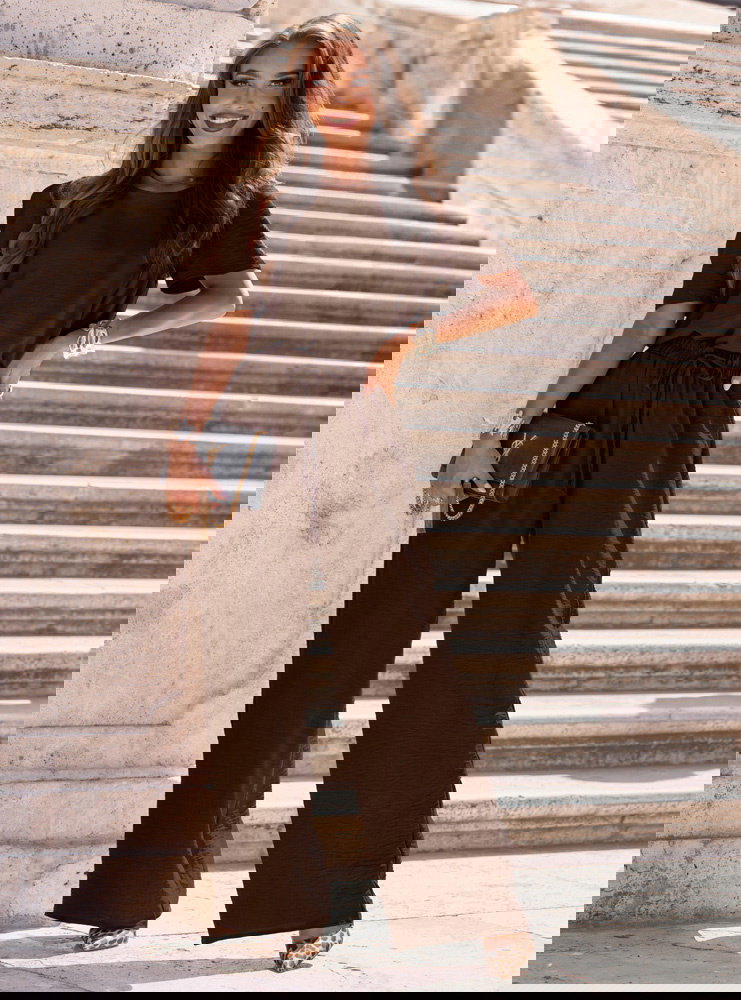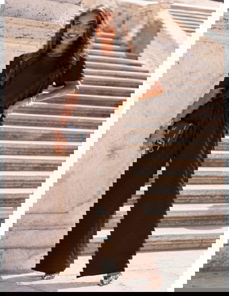 Czekoladowy komplet bluzka i szerokie spodnie Mascia doskonale sprawdzi się na co dzień – do pracy, na spacer czy kawę z przyjaciółką. To także świetna propozycja na mniej formalne spotkania, gdzie chcesz wyglądać stylowo, ale nieprzesadnie.