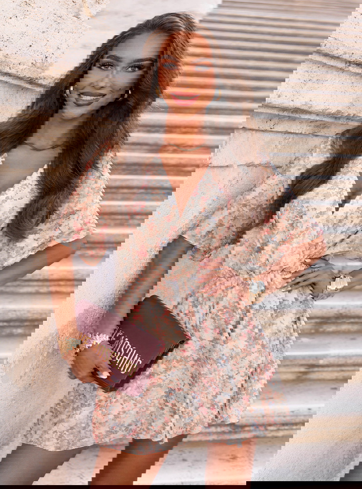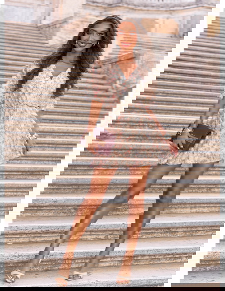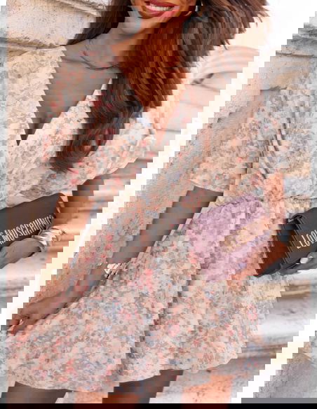 Wzorzysty kombinezon jak sukienka z przekładanym dekoltem Bassa - R15 to modna i kobieca propozycja, która zachwyca lekkością i stylem. Łączy wygodę kombinezonu z romantyzmem sukienki, tworząc wyjątkowy efekt.