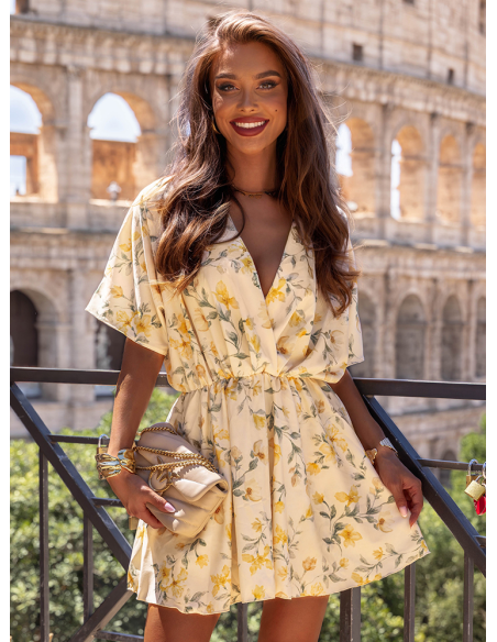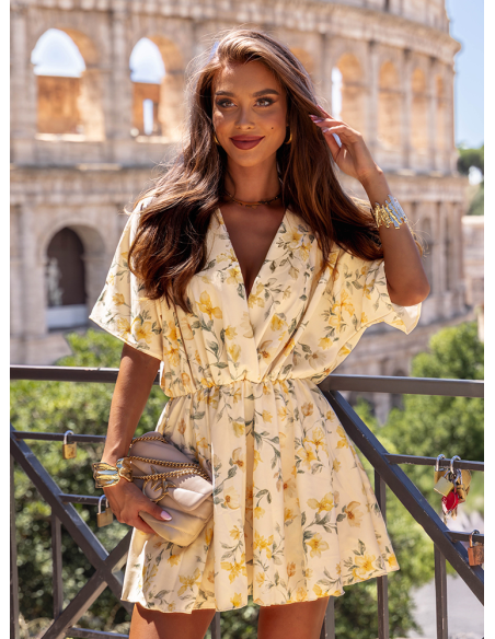 Wzorzysty kombinezon jak sukienka z przekładanym dekoltem Bassa - R17 to połączenie wygody, stylu i kobiecego uroku, które zachwyca już od pierwszego spojrzenia. To idealna propozycja dla kobiet, które chcą wyglądać elegancko, ale nie rezygnować z komfortu. Ten model łączy w sobie lekkość sukienki z praktycznością kombinezonu, tworząc niezwykle modny i uniwersalny element garderoby. Zwraca uwagę romantycznym wzorem w delikatne kwiaty, który pięknie podkreśla letni klimat. Przekładany dekolt dodaje subtelnego wdzięku i optycznie wydłuża sylwetkę. Krótkie, luźne rękawy oraz gumka w talii sprawiają, że kombinezon świetnie układa się na każdej figurze. Jego krój tworzy iluzję lekkiej sukienki, dzięki czemu wygląda kobieco i zwiewnie. To doskonały wybór na dni, gdy chcesz czuć się swobodnie, a jednocześnie przyciągać spojrzenia. Stylowy, ale bez przesady — idealny balans między luzem a elegancją. Jeśli szukasz ubrania, które z łatwością dopasujesz do wielu okazji, ten kombinezon będzie strzałem w dziesiątkę.