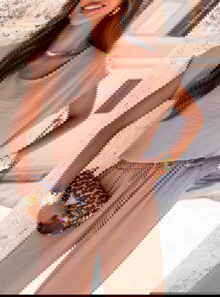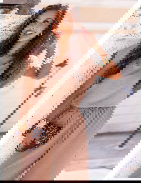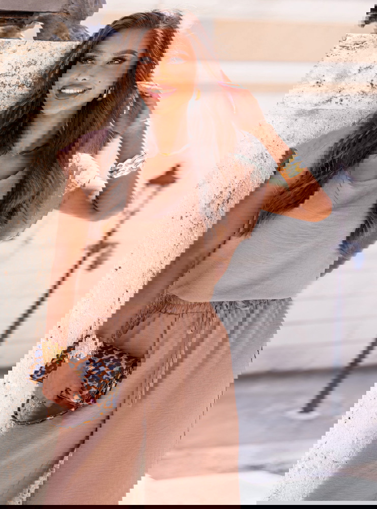 Komplet bluzka z krótkim rękawem i spodnie Nunziaa - mocha mousse to propozycja, która z łatwością wpisuje się w codzienny styl każdej kobiety. Jego ponadczasowy krój i delikatny kolor sprawiają, że prezentuje się lekko, świeżo i bardzo stylowo. Odcień mocha mousse to idealna alternatywa dla klasycznych beży – ciepły, elegancki, a jednocześnie bardzo uniwersalny. Bluzka z krótkim rękawem ma luźny, kobiecy fason, który doskonale układa się na sylwetce i zapewnia wygodę przez cały dzień. Spodnie z wysokim stanem i wiązaniem w talii pięknie podkreślają proporcje i nadają sylwetce smukłości. Całość wygląda bardzo nowocześnie i spójnie – to komplet, który nie wymaga wiele, by wyglądać świetnie. Możesz nosić go jako gotowy zestaw lub dowolnie łączyć z innymi ubraniami z Twojej szafy. To idealna baza do stylizacji na każdą porę dnia – od porannego cappuccino po wieczorne spotkania. Ten komplet jest lekki, komfortowy i bardzo „do noszenia”. Jeśli szukasz czegoś, co po prostu działa – ten model spełni oczekiwania bez wysiłku.