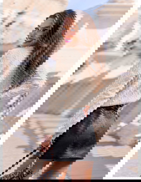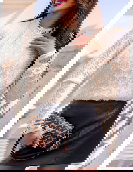 Beżowy sweter z warkoczowymi splotami Yeanne
