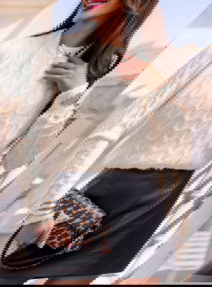 Beżowy sweter z warkoczowymi splotami Yeanne to ponadczasowy model, który powinien znaleźć się w każdej kobiecej szafie. Łączy klasyczną formę z subtelnym detalem, który dodaje mu wyjątkowego uroku.