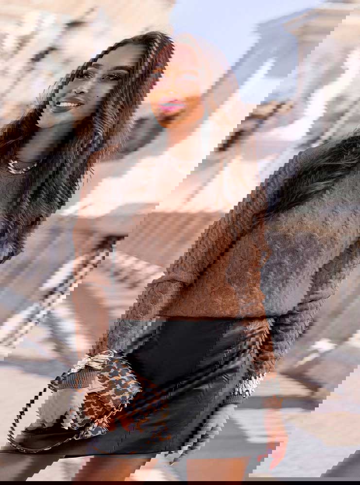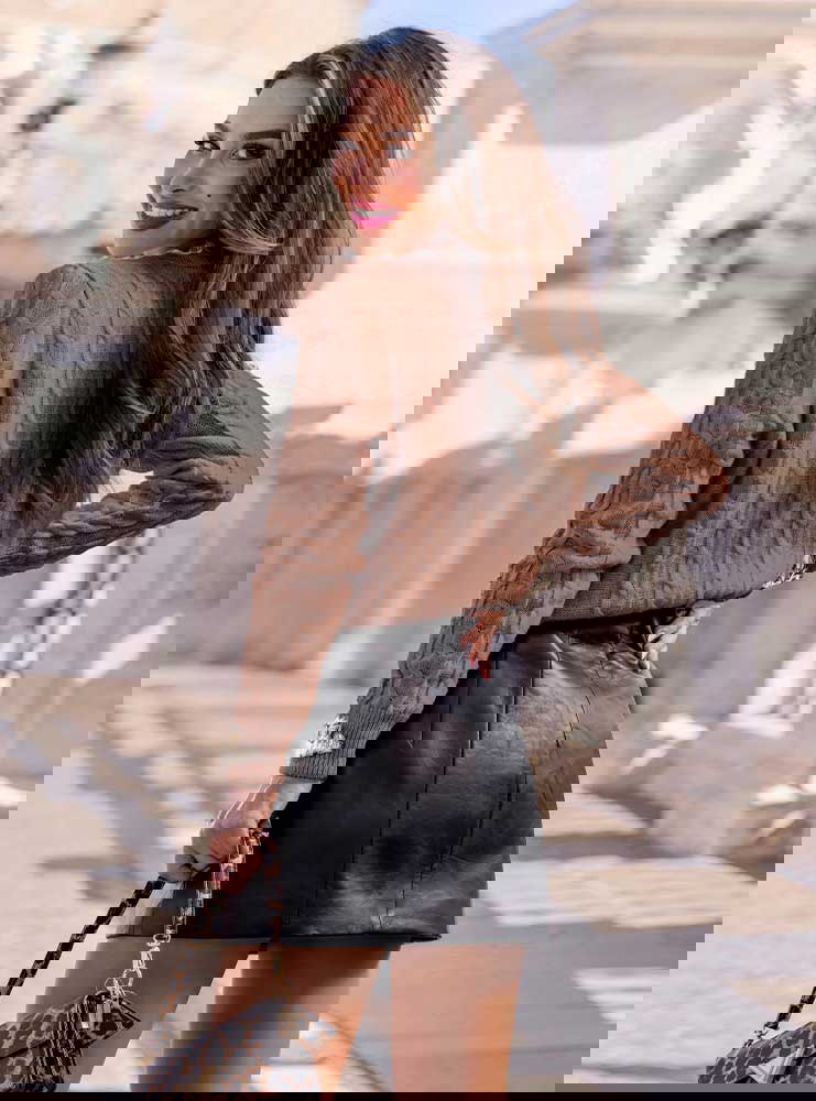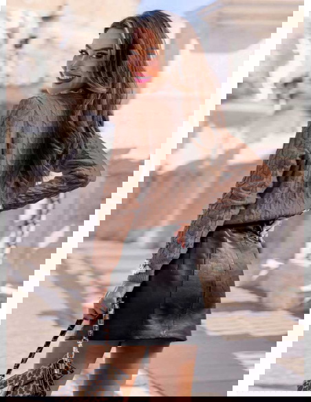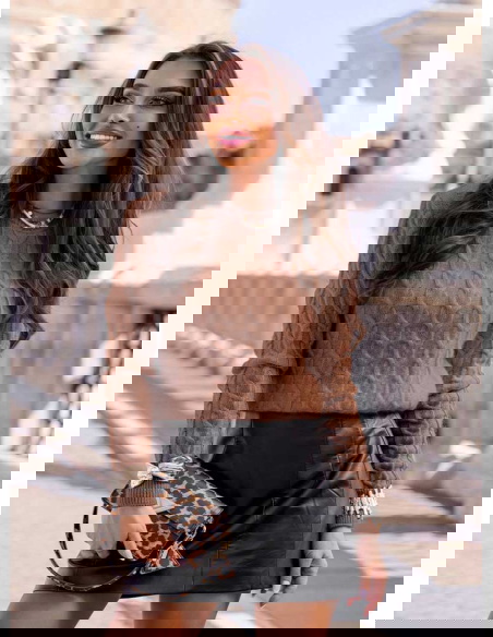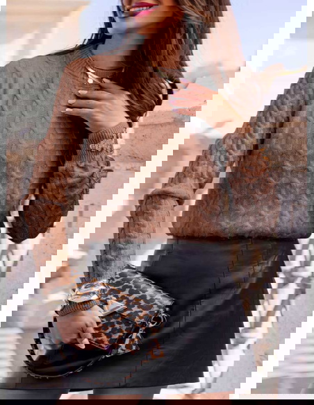 Sweter z warkoczowymi splotami Yeanne - mocha mousse to klasyka, która nigdy nie wychodzi z mody. Subtelny odcień ciepłego brązu pięknie podkreśla urodę i pasuje do wielu jesienno-zimowych stylizacji. Sploty w formie warkoczy nadają mu wyjątkowego charakteru, dzięki czemu całość prezentuje się elegancko, ale z nutą swobody. To model, który możesz nosić zarówno na co dzień, jak i na bardziej dopracowane okazje. Krój swetra jest wygodny i kobiecy, a zarazem lekko dopasowany, co sprawia, że świetnie podkreśla sylwetkę. Dekolt typu crew neck dodaje mu klasy, a dopracowane wykończenia przy nadgarstkach sprawiają, że wygląda schludnie i ponadczasowo. Sweter pięknie komponuje się zarówno ze spódnicami, jak i ze spodniami – to prawdziwy must-have na sezon przejściowy. W kolekcji prefall ten model wpisuje się idealnie w potrzeby garderoby na czas, kiedy lato delikatnie ustępuje miejsca jesieni. Stylowy, ale bez zbędnego przepychu – idealny wybór na nowy sezon. Wystarczy jeden element, by dodać charakteru całemu outfitowi – właśnie tak działa ten sweter.
