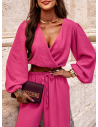 Beżowy komplet top z bufiastymi rękawami i długie spodnie Navis to propozycja, która łączy lekkość, kobiecość i nowoczesny styl. Ten zestaw to prawdziwy hit sezonu, który podkreśla sylwetkę i przyciąga spojrzenia bez zbędnego wysiłku. Głęboki dekolt i krótki top z bufiastymi rękawami tworzą efektowną górę, która dodaje całości wyrafinowanego charakteru. Wysoki stan i szerokie nogawki spodni pięknie równoważą proporcje i gwarantują komfort przez cały dzień. Delikatny, beżowy kolor jest niezwykle uniwersalny – pasuje zarówno do opalonej skóry latem, jak i do neutralnych stylizacji jesienią. To komplet, który sprawdzi się w wielu sytuacjach – od casualowych po bardziej wyjątkowe. Bufiasty rękaw dodaje romantycznego, ale wciąż nowoczesnego akcentu, który nie wychodzi z mody. Fason z odkrytym brzuchem wciąż jest na topie, ale tu zyskał bardziej elegancką formę. Kolekcja prefall, z której pochodzi ten model, oferuje rzeczy lekkie, stylowe i gotowe na nadchodzącą zmianę sezonu. Jeśli lubisz ubrania, które są jednocześnie modne i funkcjonalne – ten zestaw spełni Twoje oczekiwania.