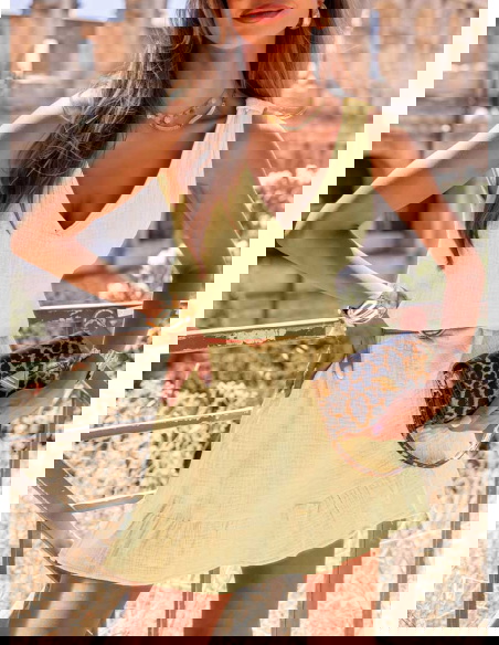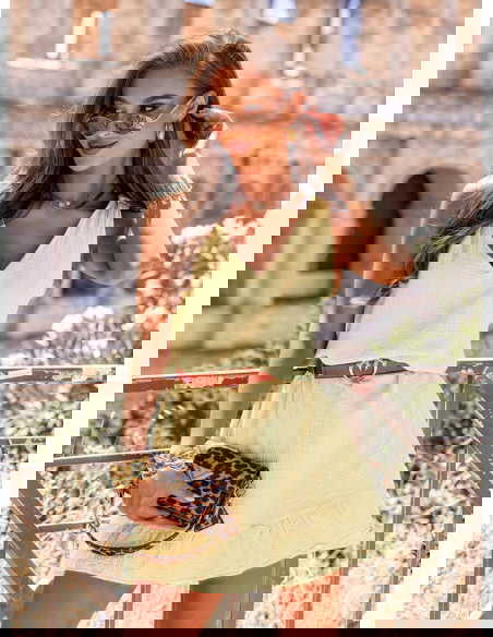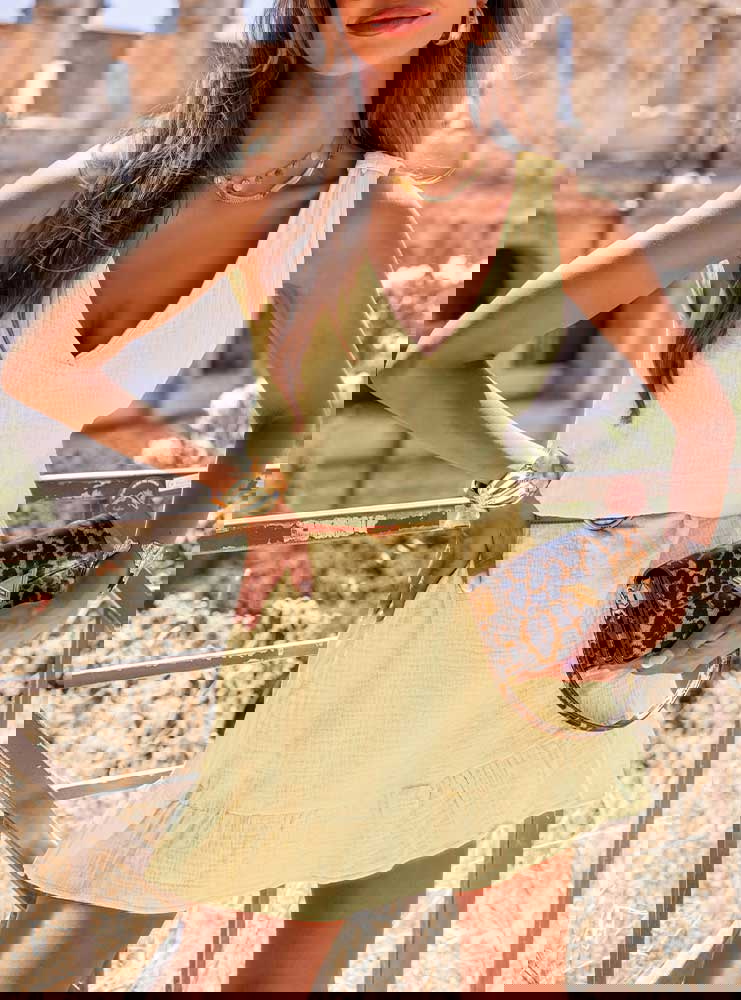 Muślinowa sukienka na ramiączkach Danayle - masełkowa to kwintesencja letniej lekkości i dziewczęcego uroku. Jej delikatny odcień przyciąga wzrok i wprowadza pozytywny, słoneczny klimat do każdej stylizacji. To idealna propozycja dla kobiet, które chcą poczuć się swobodnie, a jednocześnie bardzo kobieco. Sukienka jest wyjątkowo lekka i przyjemna w noszeniu – dosłownie otula sylwetkę, nie krępując ruchów. Ma luźny, mocno rozkloszowany fason, który prezentuje się efektownie bez potrzeby podkreślania talii. Można nosić ją solo lub stylizować według własnych upodobań – na przykład z paskiem, jak pokazano na zdjęciu (pasek nie jest w zestawie). Ramiączka i dekolt w literę V pięknie eksponują ramiona i szyję, dodając subtelnej zmysłowości. Fason nadaje sylwetce lekkości, idealnie maskując ewentualne niedoskonałości. Dzięki muślinowej strukturze materiału sukienka układa się bardzo naturalnie i wygląda niezwykle świeżo. To opcja, która bez wątpienia sprawdzi się w każdej wakacyjnej walizce – i nie tylko.