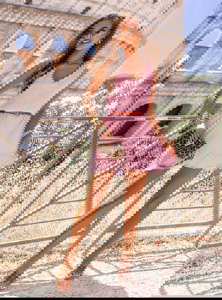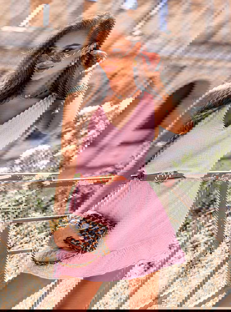Pudrowa muślinowa sukienka na ramiączkach Danayle to idealna propozycja na lato dla kobiet, które cenią sobie lekkość, wygodę i kobiecy styl. Jej zwiewny krój pięknie pracuje w ruchu, tworząc romantyczny, świeży look bez przesady. Subtelny odcień pudrowego różu dodaje uroku i delikatności, podkreślając wakacyjny klimat stylizacji. Sukienka została zaprojektowana z myślą o swobodzie – luźna, bardzo rozkloszowana forma nie krępuje ruchów i świetnie sprawdza się w upalne dni. Ramiączka odsłaniają ramiona, dodając sylwetce lekkości i podkreślając letni charakter outfitu. To model, który nie wymaga dodatków, by wyglądać efektownie – wystarczy prosty sandał i ulubione okulary przeciwsłoneczne. Można nosić ją solo lub stylizować według własnych upodobań – na przykład z paskiem, jak pokazano na zdjęciu (pasek nie jest w zestawie). To świetna opcja zarówno na co dzień, jak i na letnie wyjazdy – wrzuć ją do walizki i gotowe! Jej naturalny, nieprzekombinowany wygląd sprawia, że pasuje do każdego typu urody. Jeśli szukasz sukienki, w której po prostu poczujesz się dobrze – właśnie ją znalazłaś.