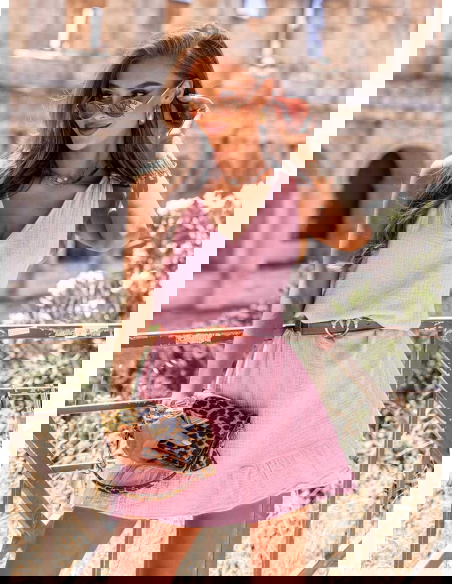 Pudrowa muślinowa sukienka na ramiączkach Danayle to letni must-have, który łączy wygodę, styl i dziewczęcy urok. Jej bardzo rozkloszowany krój daje pełną swobodę i prezentuje się niezwykle lekko.