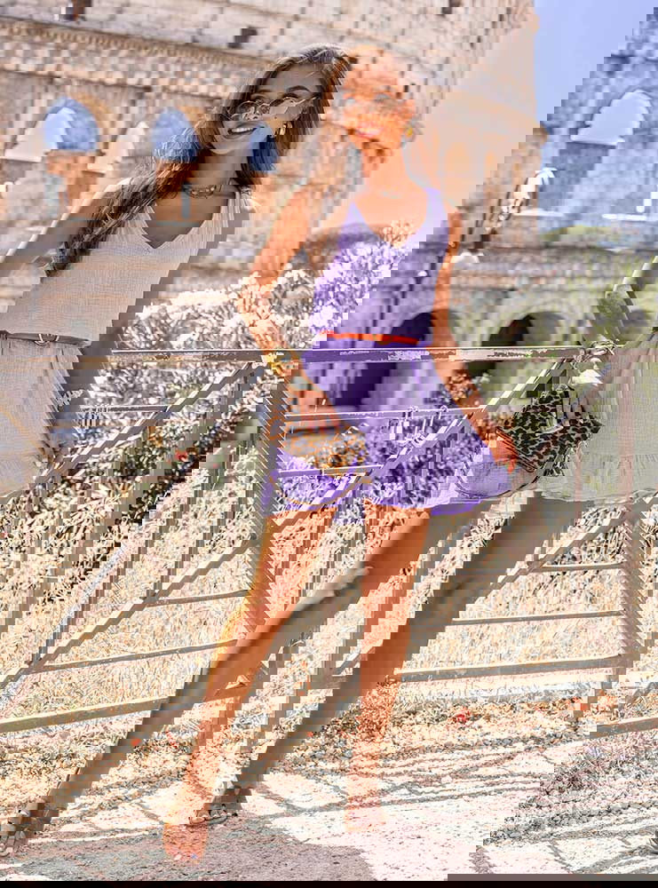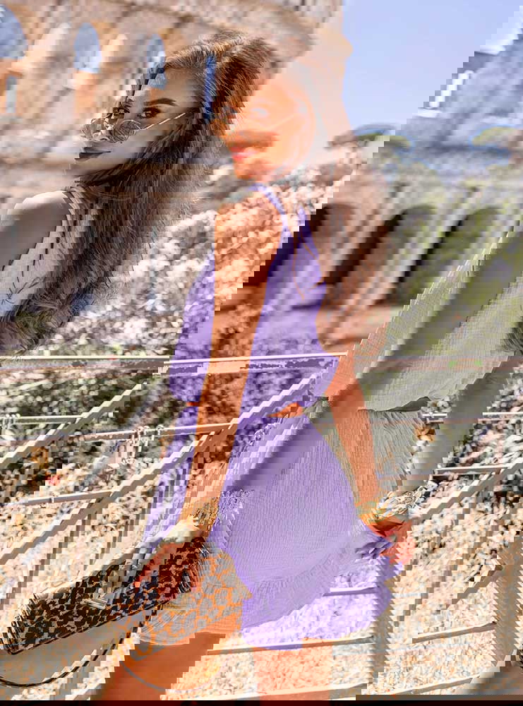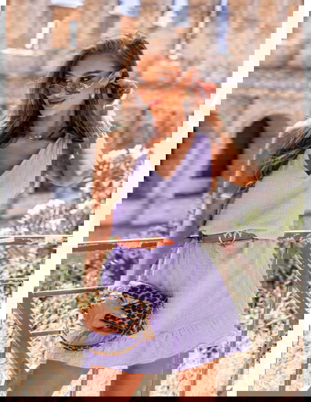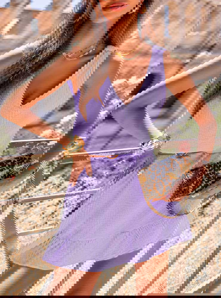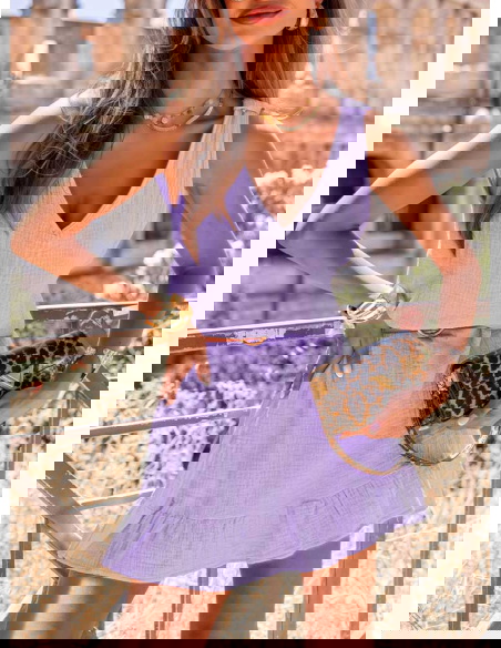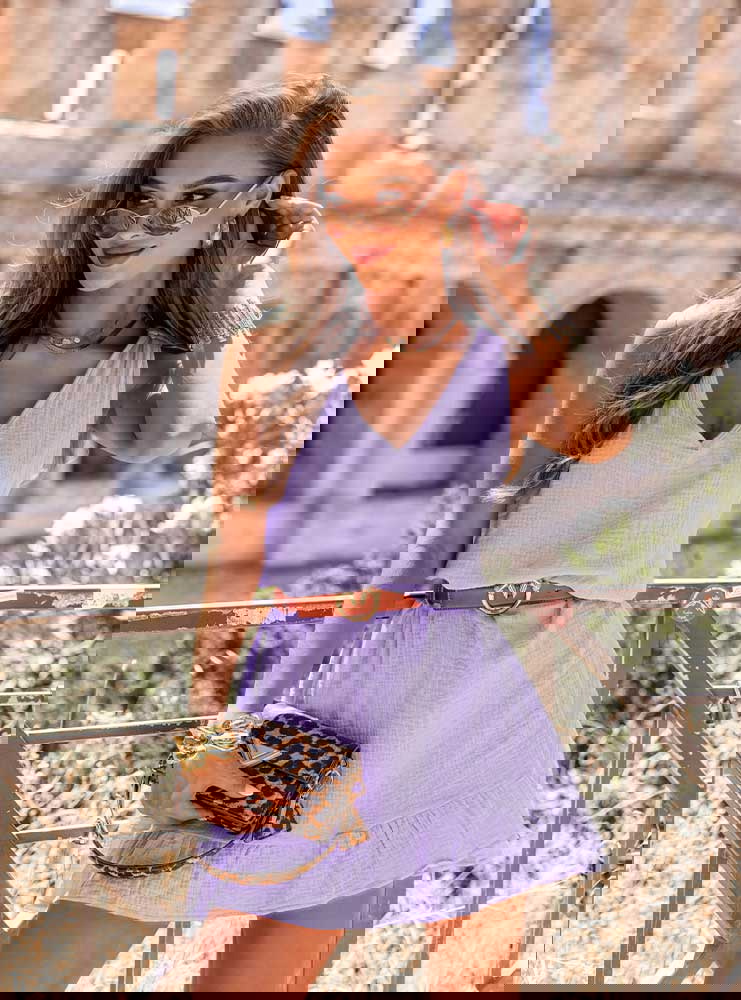 Liliowa muślinowa sukienka na ramiączkach Danayle to kwintesencja letniej lekkości i dziewczęcego uroku. Jej luźny, bardzo rozkloszowany krój zapewnia swobodę ruchu i maksymalny komfort – szczególnie podczas upalnych dni. Wykonana z przyjemnego, oddychającego materiału, świetnie sprawdza się w wakacyjnych stylizacjach. Delikatny odcień liliowy przyciąga spojrzenia, a jednocześnie wygląda subtelnie i świeżo – doskonały wybór na lato. Ramiączka i dekolt w kształcie litery „V” podkreślają kobiecy charakter, nie rezygnując z wygody. To sukienka, która robi efekt bez wysiłku – po prostu ją zakładasz i jesteś gotowa do wyjścia. Można nosić ją solo lub stylizować według własnych upodobań – na przykład z paskiem, jak pokazano na zdjęciu (pasek nie jest w zestawie). Idealna do stylizacji z klapkami, sandałkami czy espadrylami, ale równie dobrze odnajdzie się w bardziej casualowym wydaniu. Dzięki swojej uniwersalności, możesz zabrać ją wszędzie – do miasta, na plażę, na wakacje. Jeśli szukasz wygodnej, przewiewnej sukienki, która wygląda stylowo i kobieco, ta liliowa propozycja z pewnością Cię zachwyci.